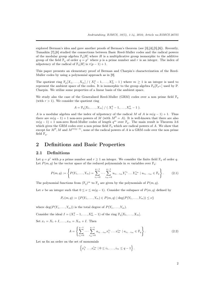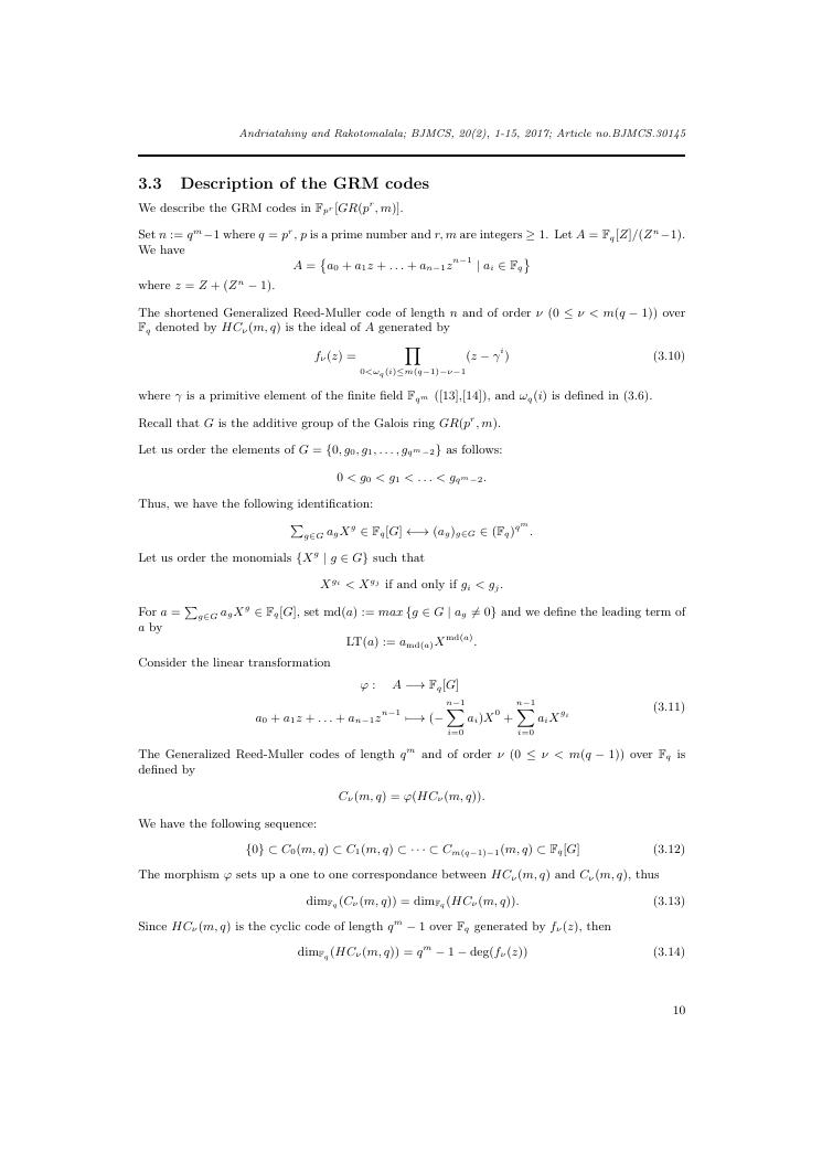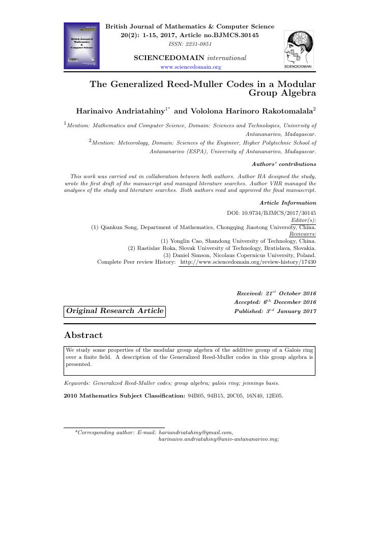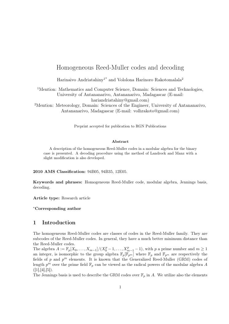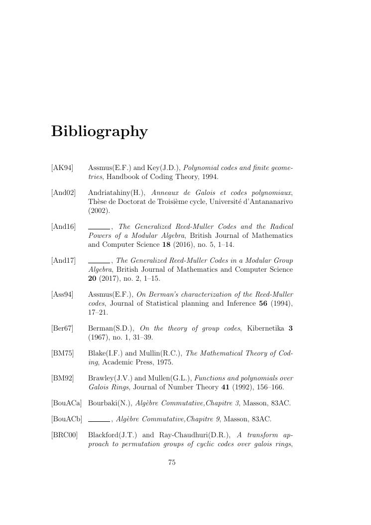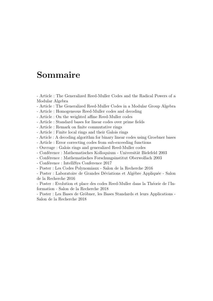 etudes sur la famille des codes reed-muller. volume ii : ensemble des travaux