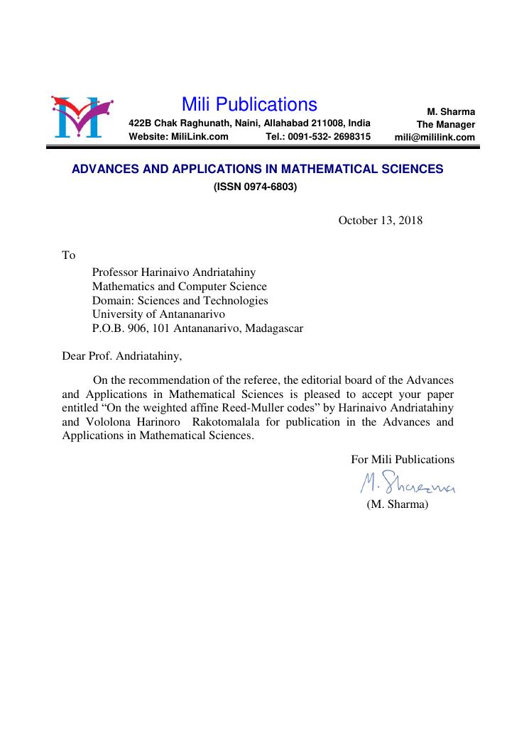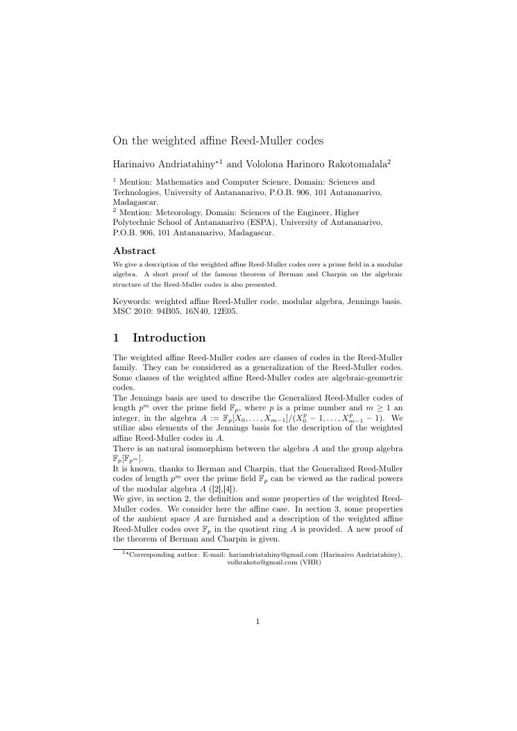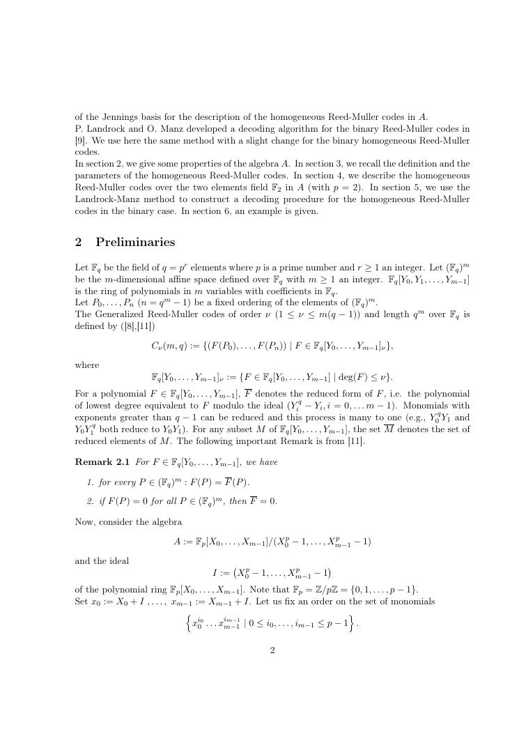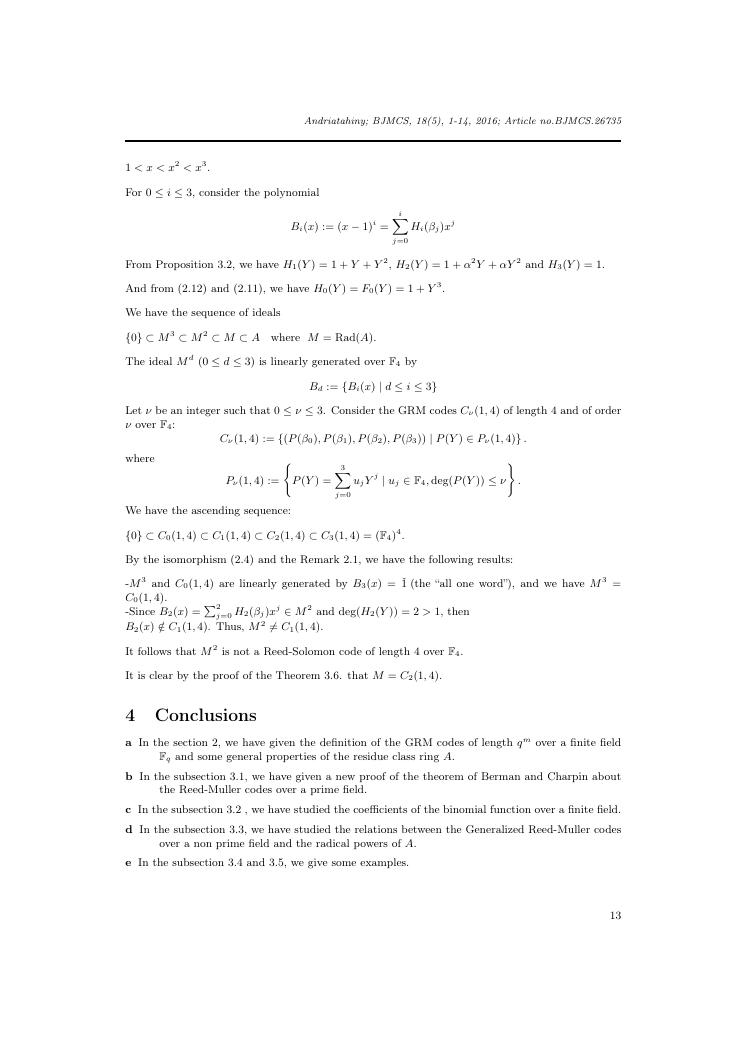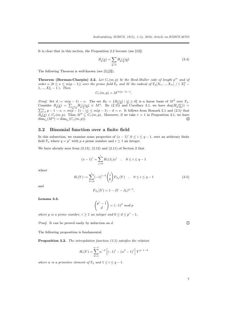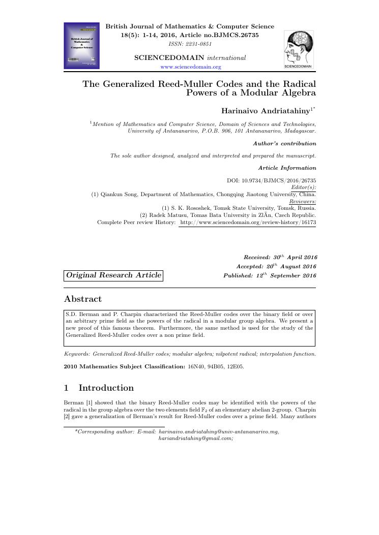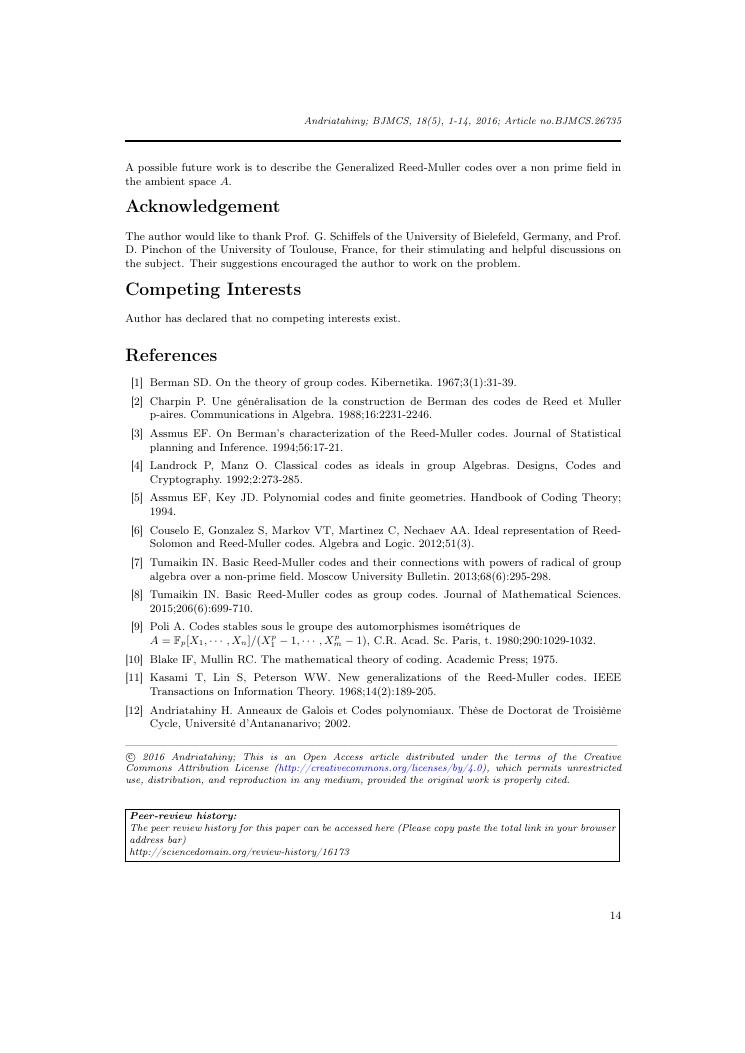 etudes sur la famille des codes reed-muller. volume ii : ensemble des travaux