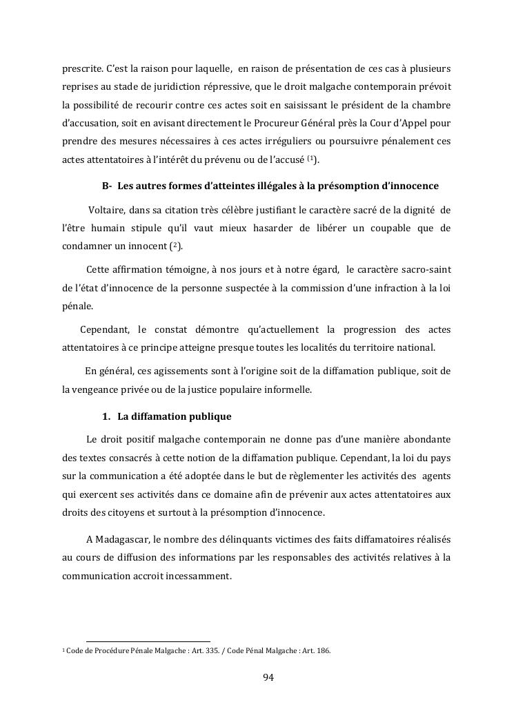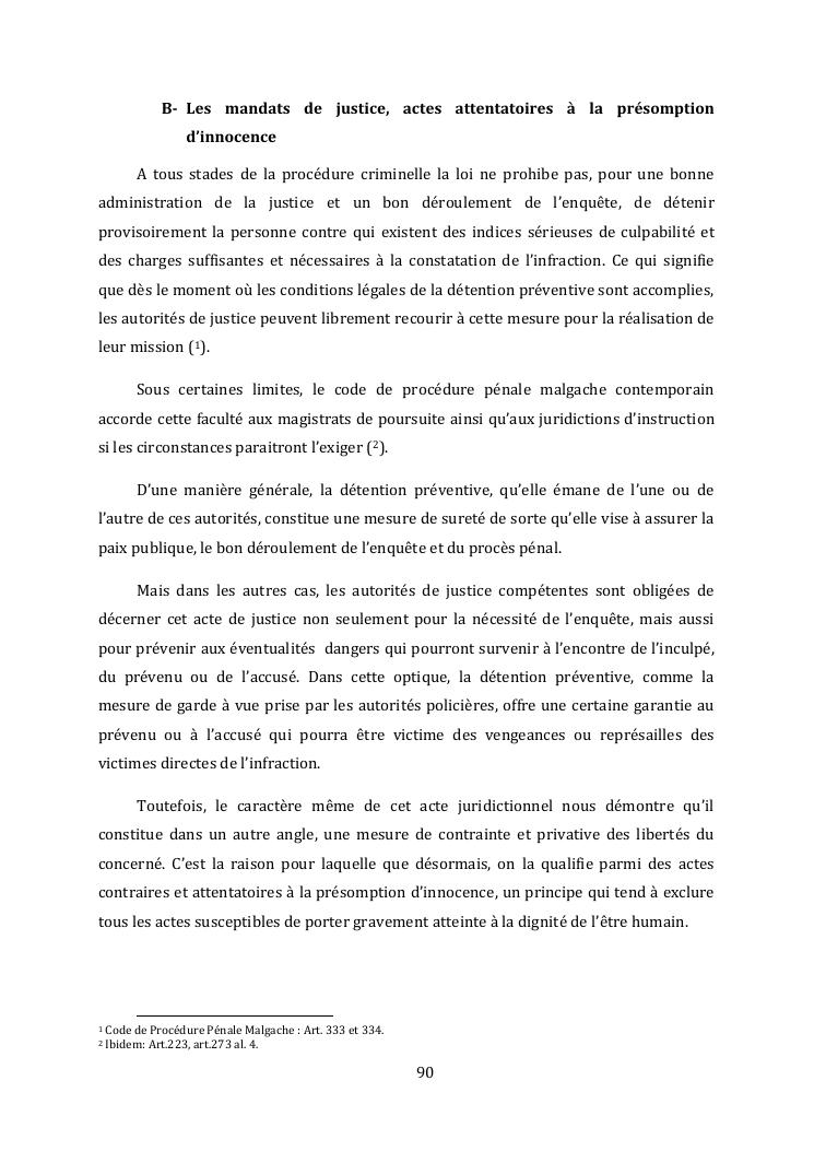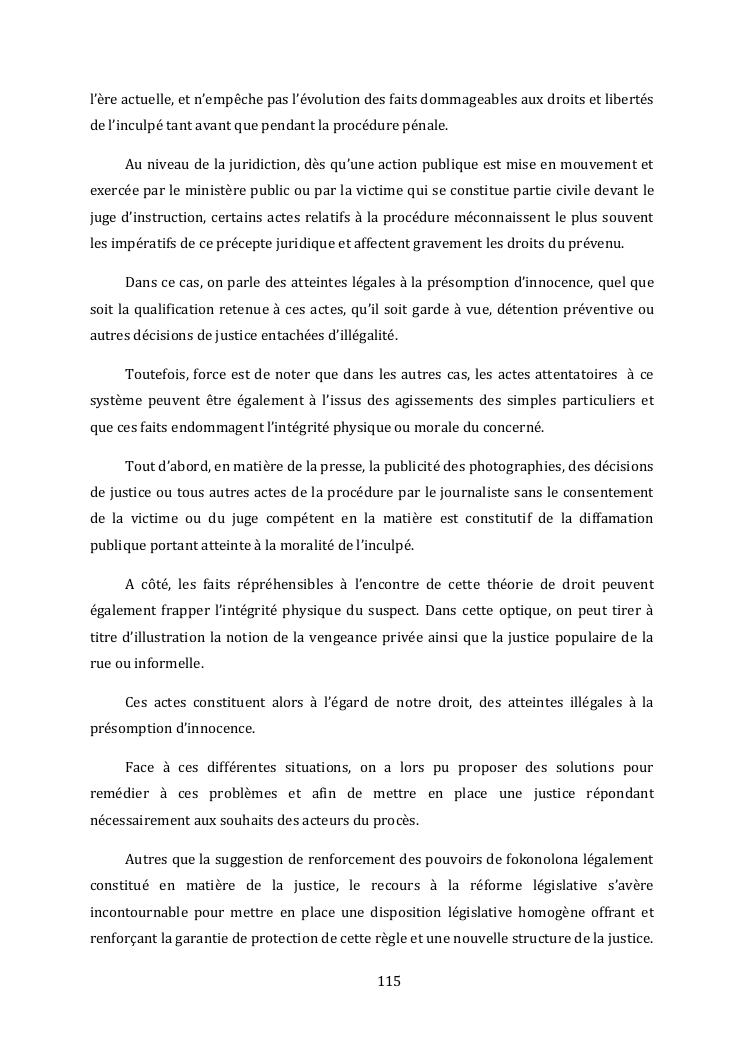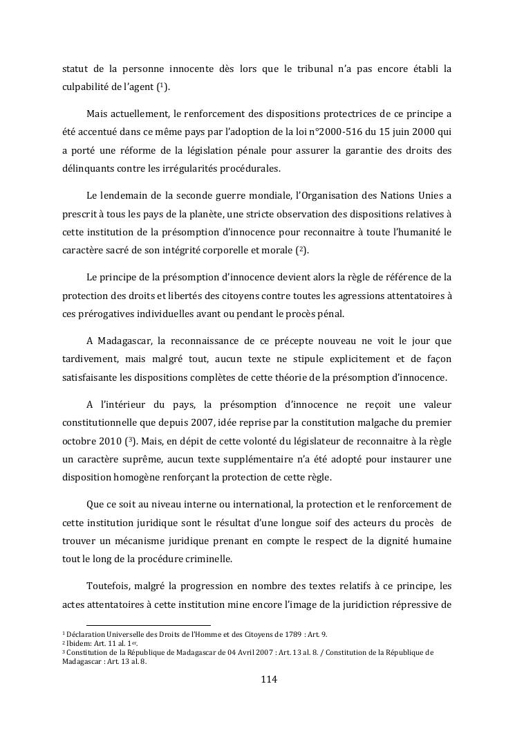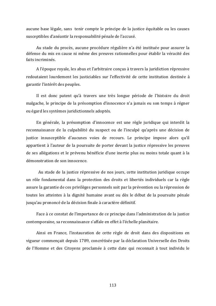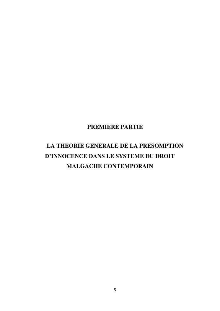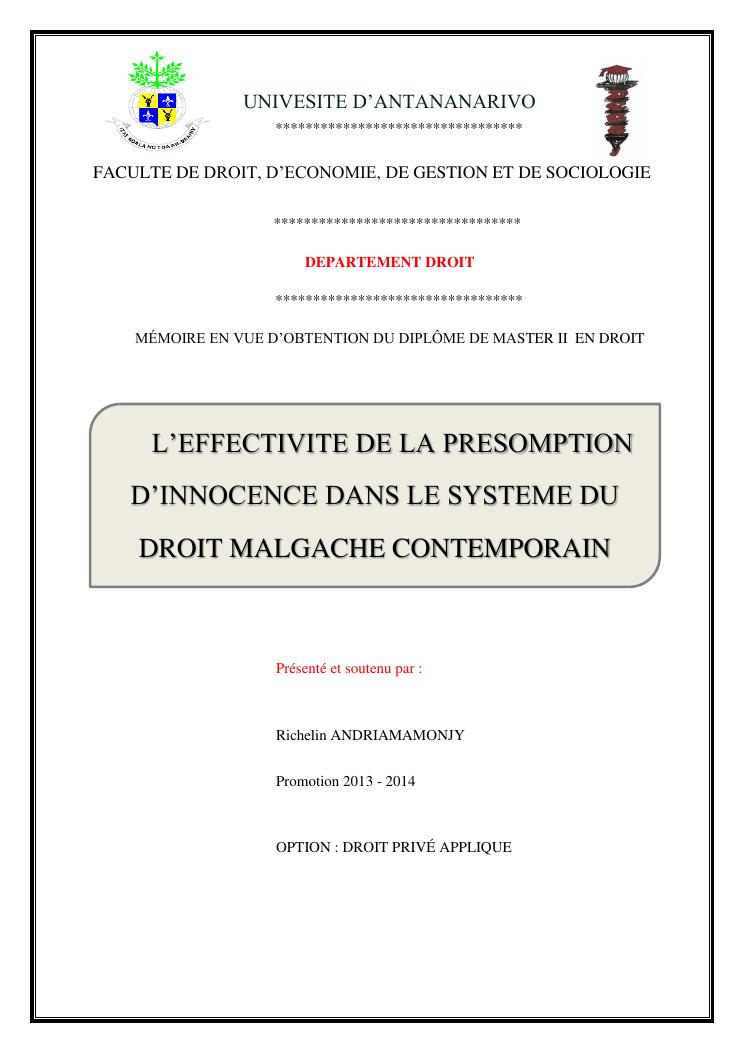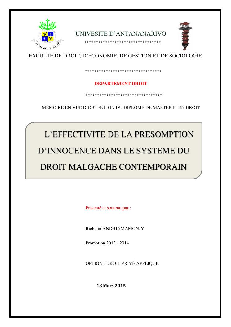 l'effectivite de la presomption d'innocence dans le systeme du droit malgache contemporain