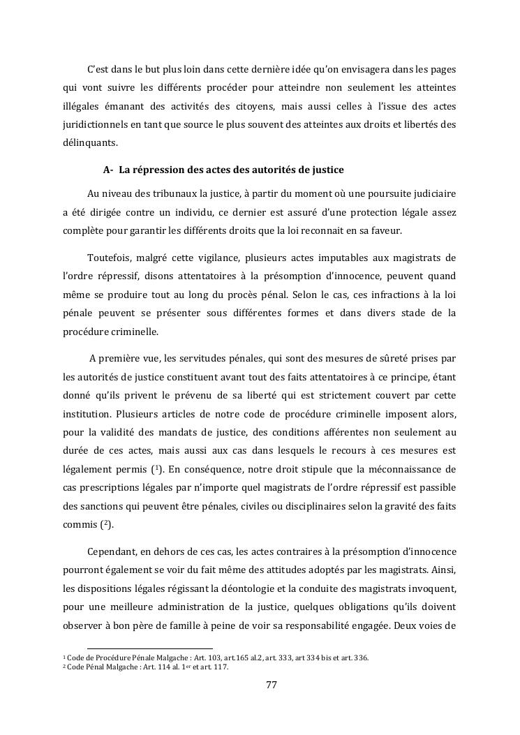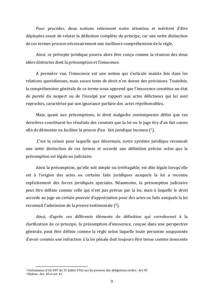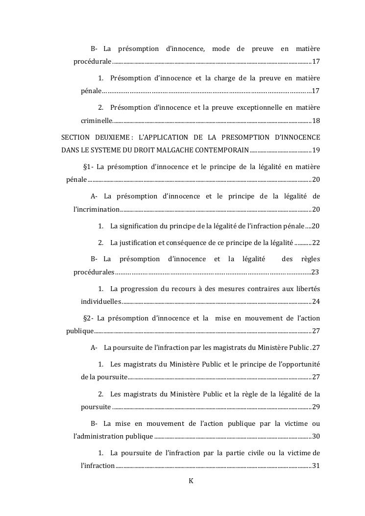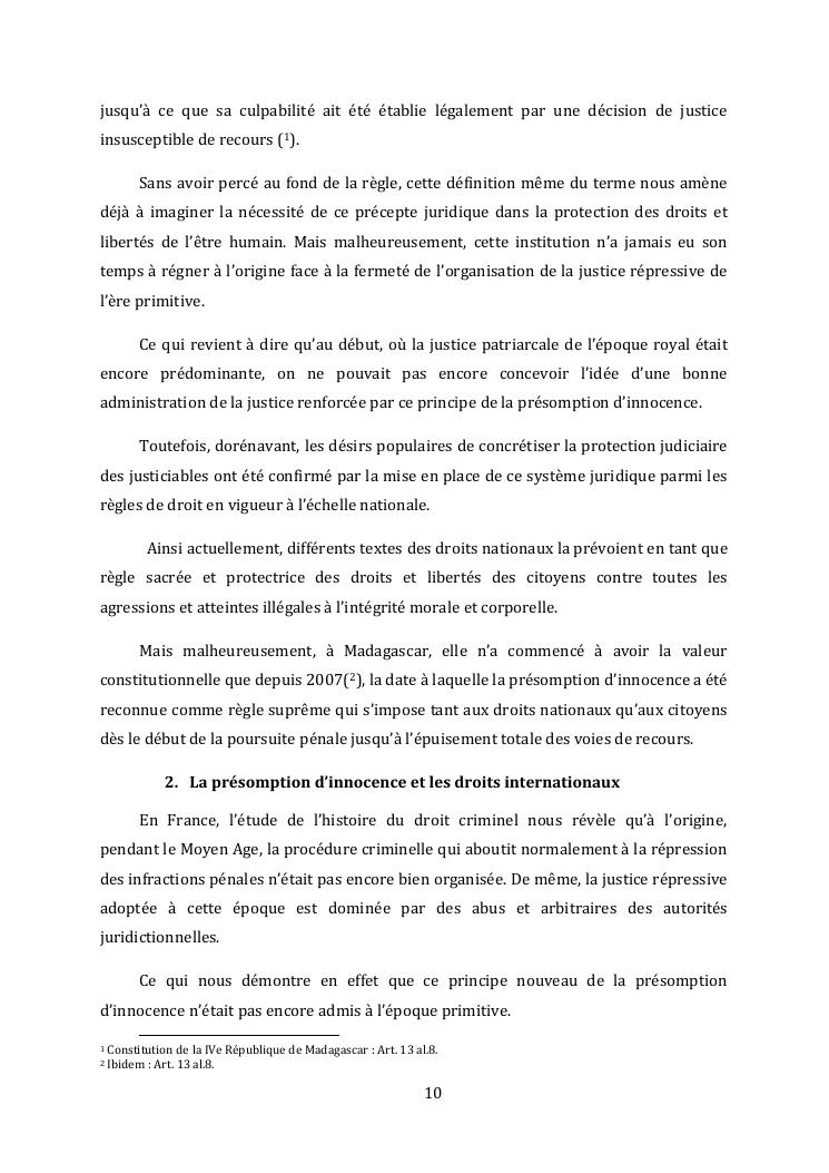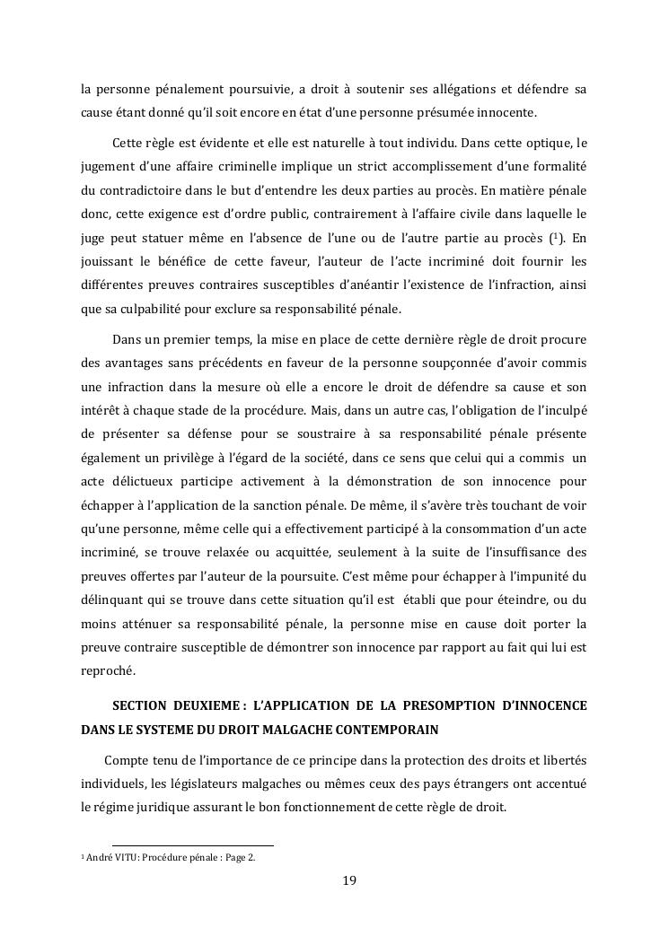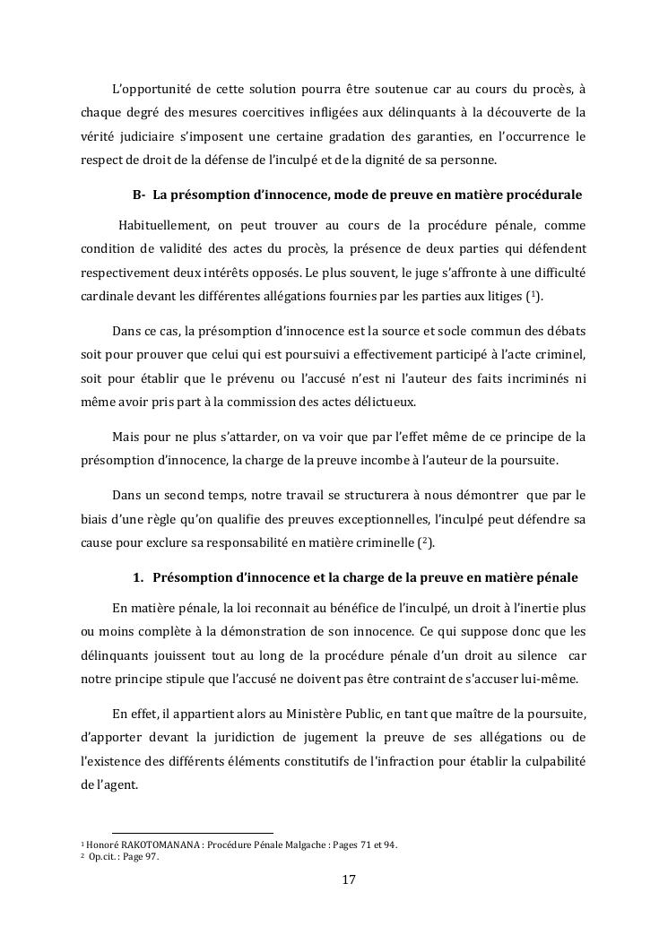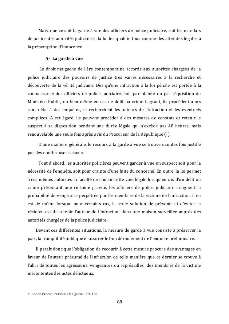 l'effectivite de la presomption d'innocence dans le systeme du droit malgache contemporain