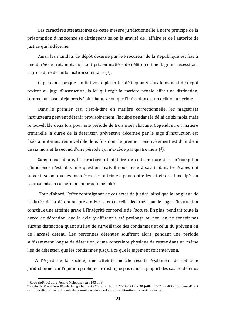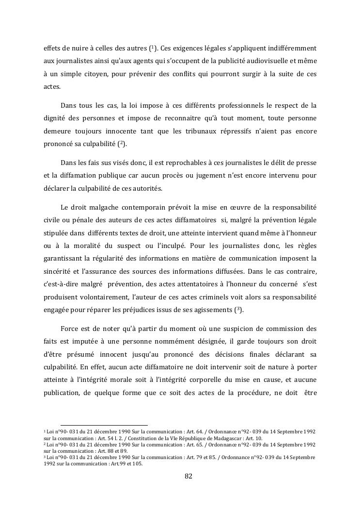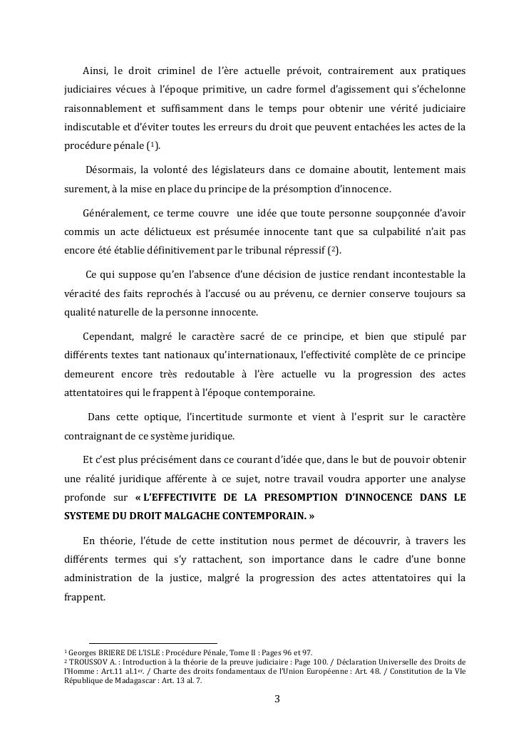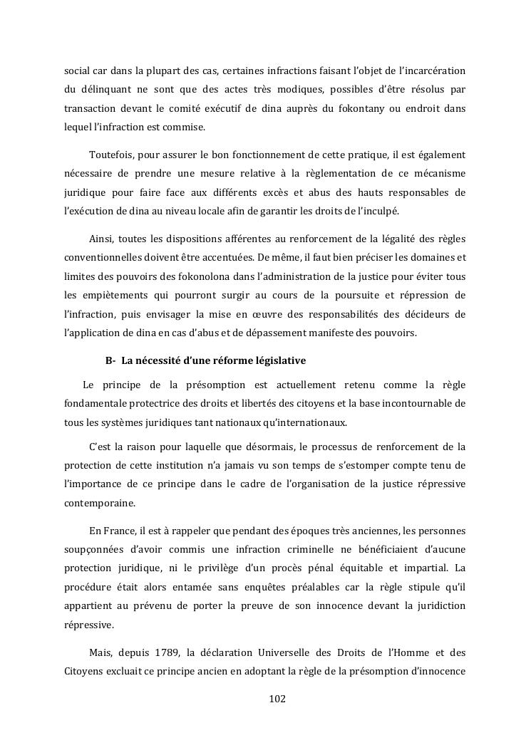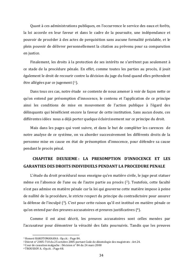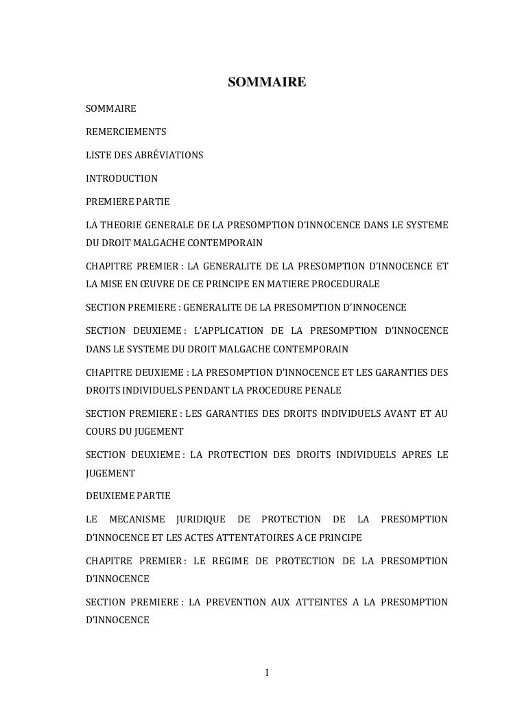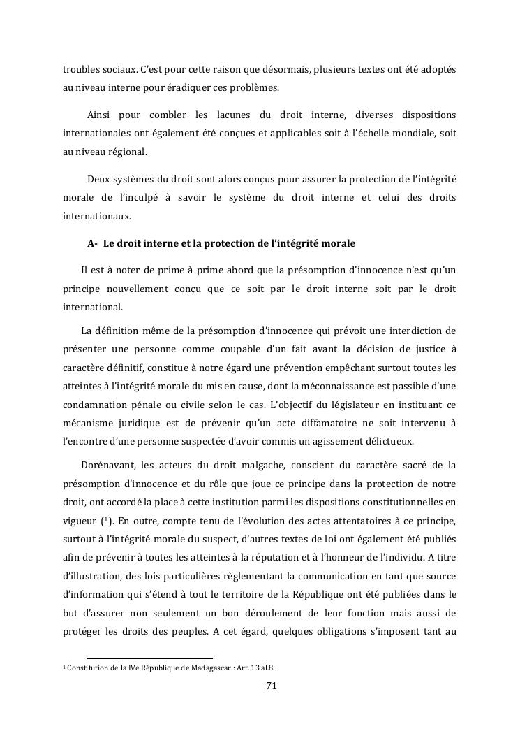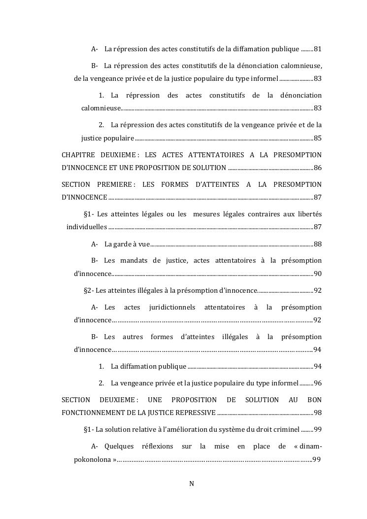 l'effectivite de la presomption d'innocence dans le systeme du droit malgache contemporain