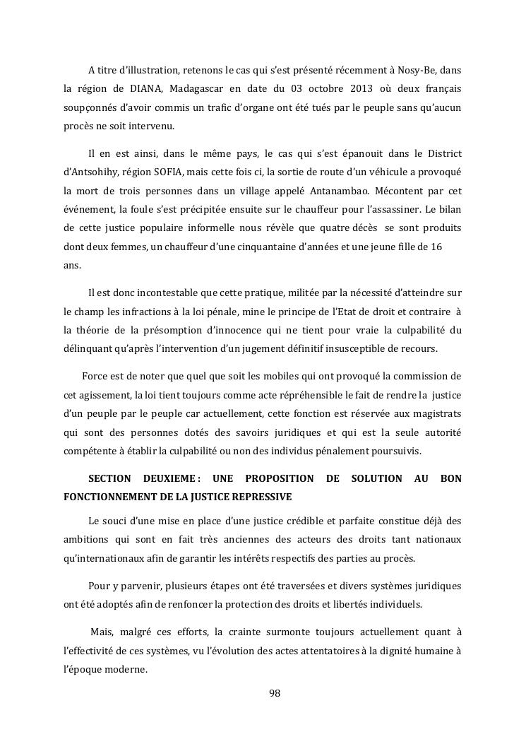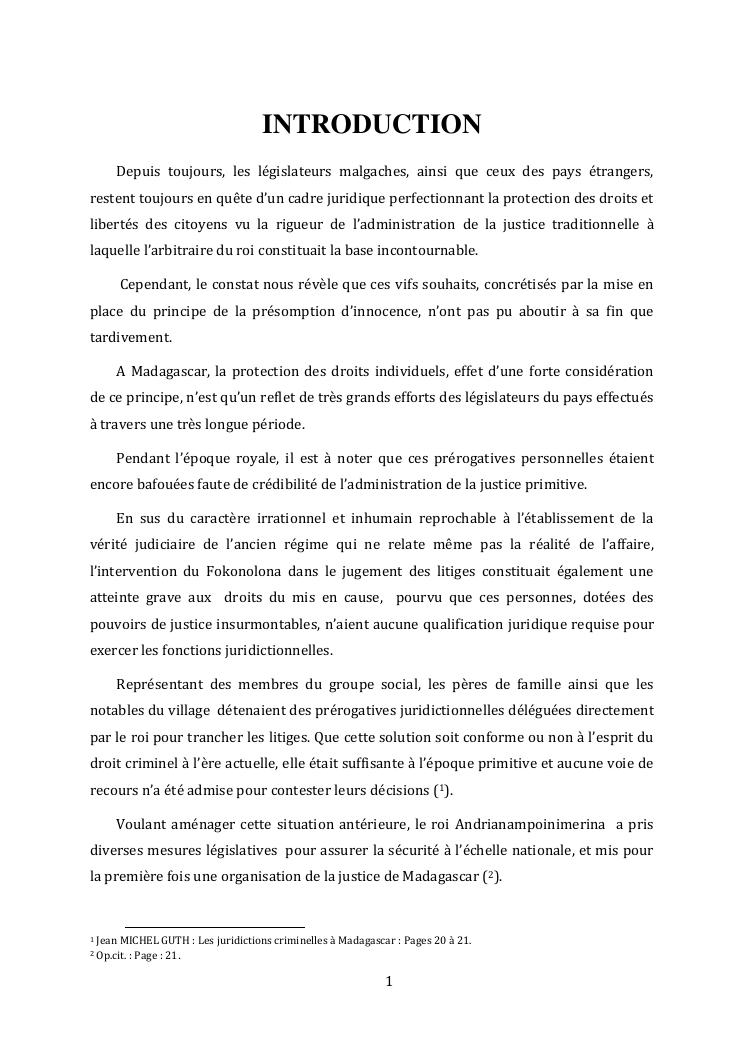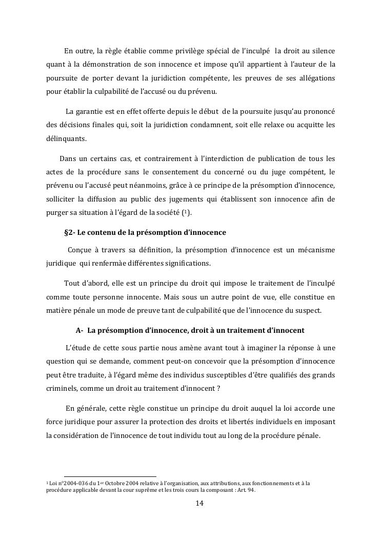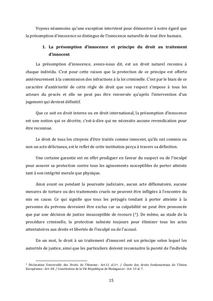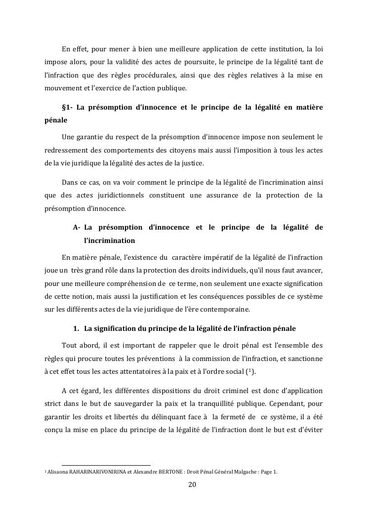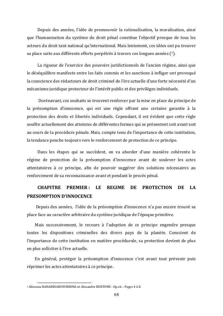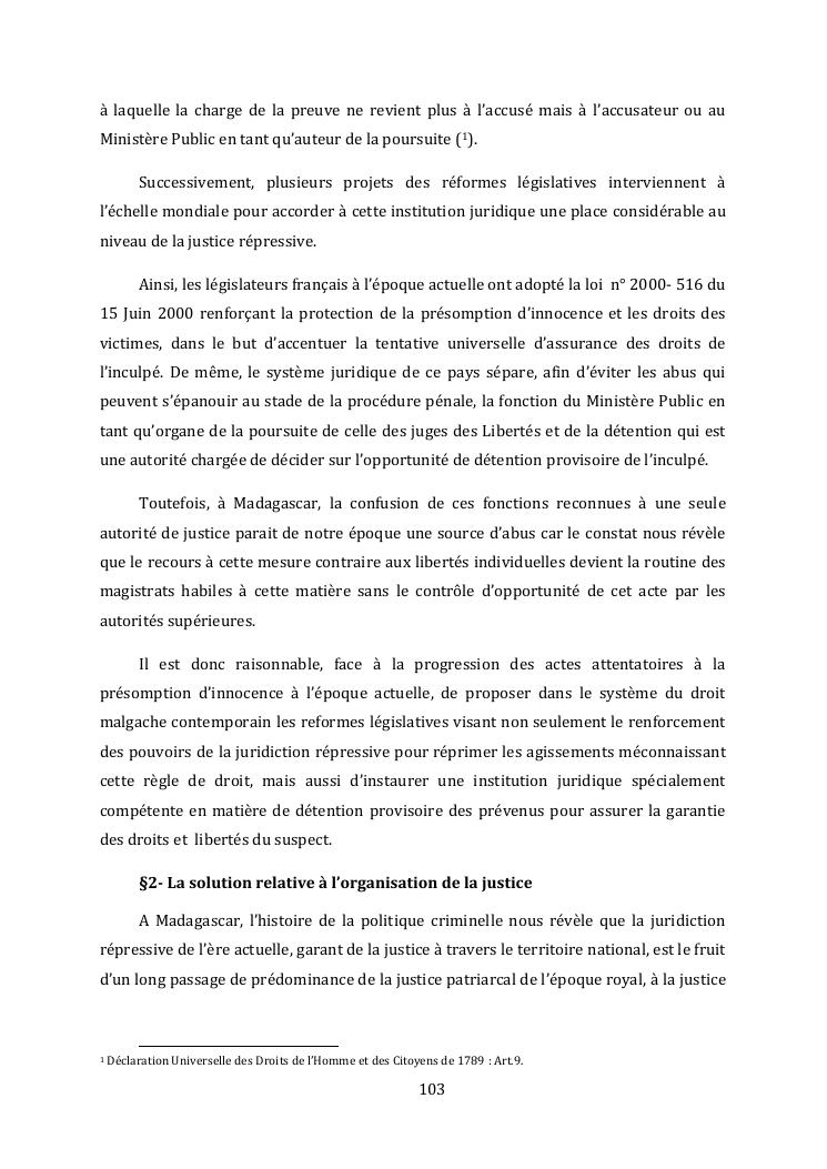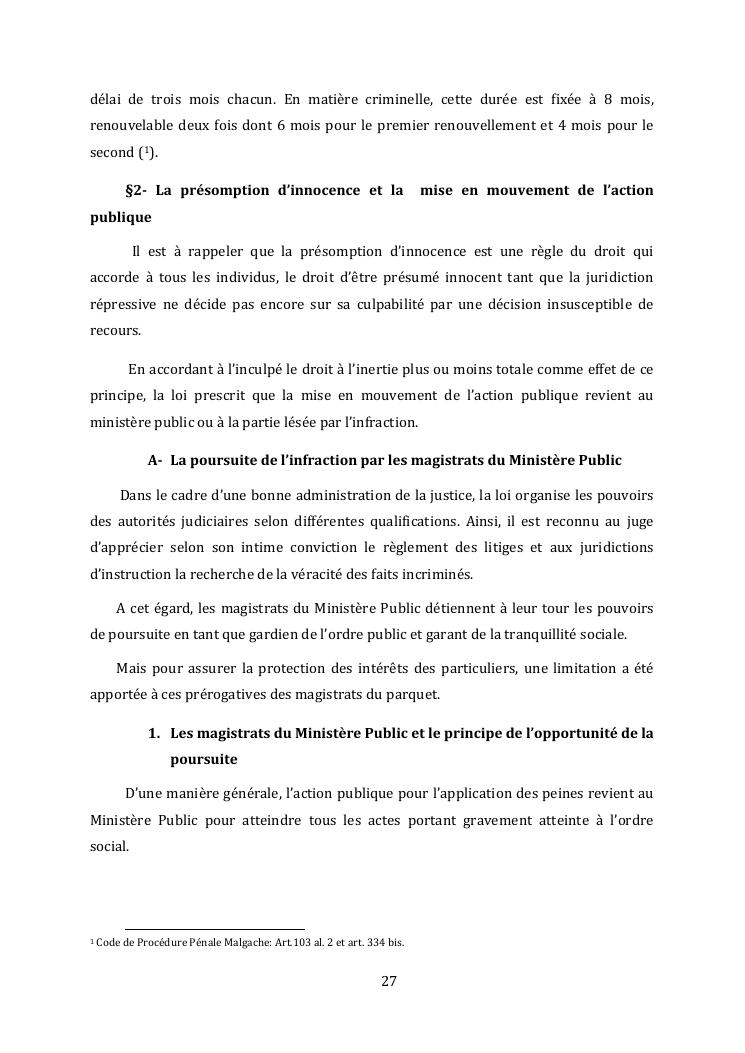 l'effectivite de la presomption d'innocence dans le systeme du droit malgache contemporain