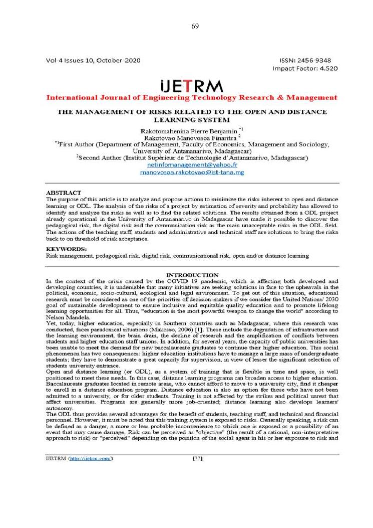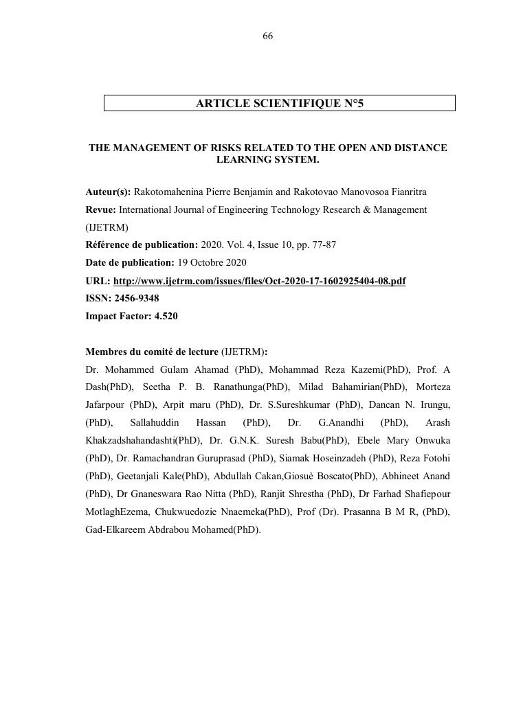 le systeme managerial de la formation ouverte et a distance : risques et qualite. volume 2 : annexes