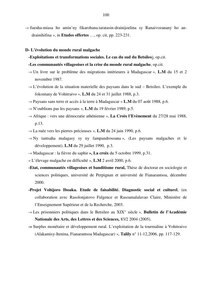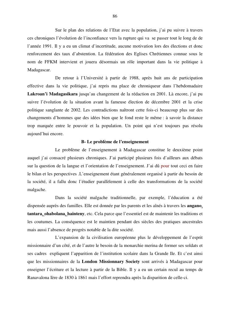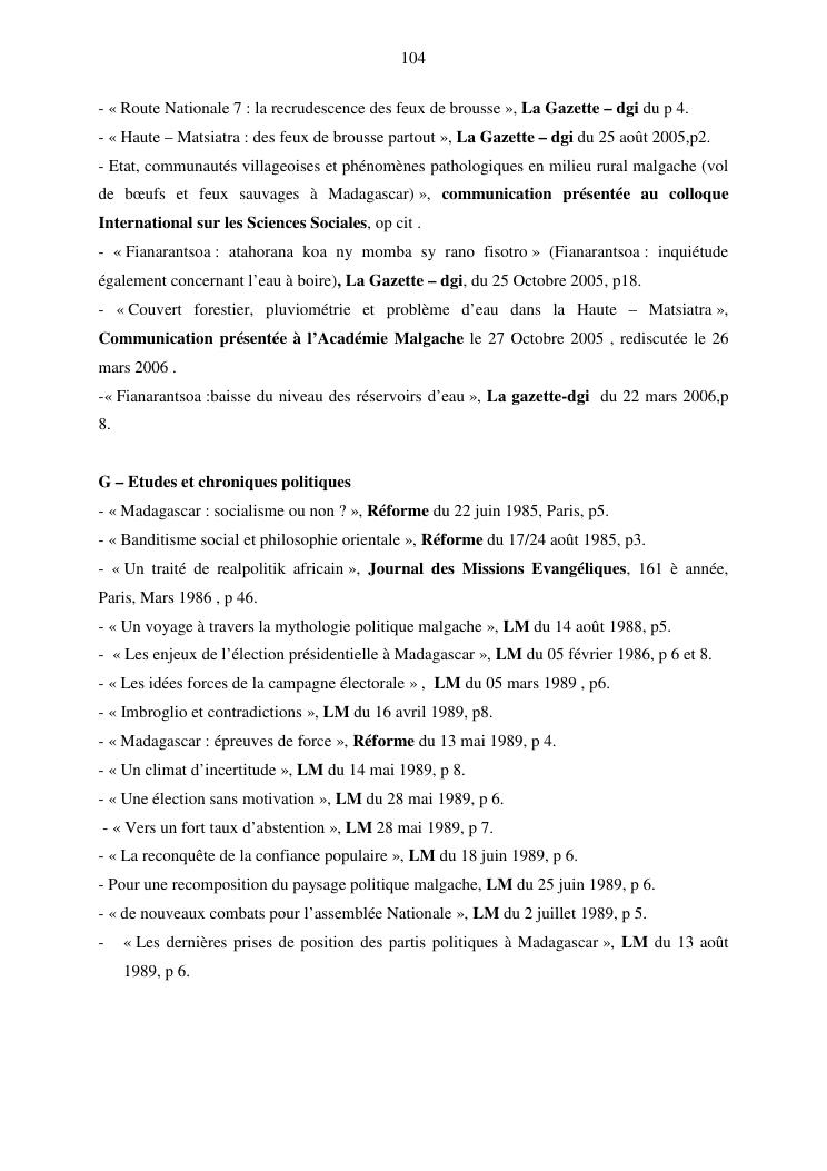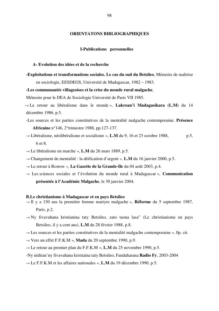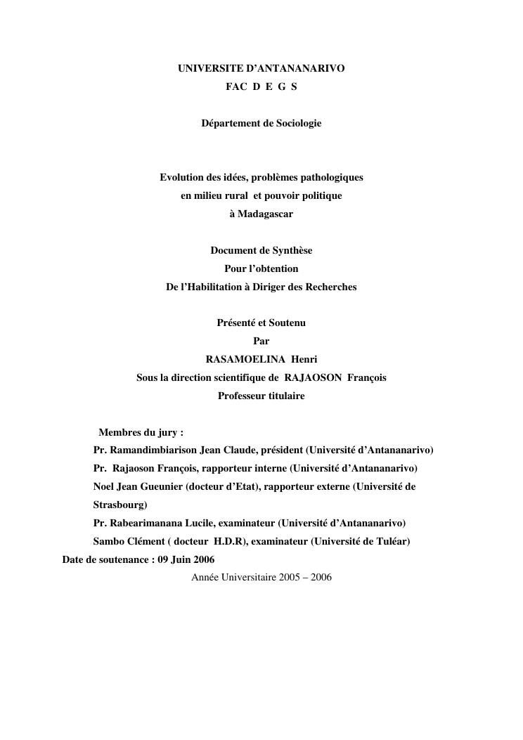evolution des idées, problèmes pathologiques en milieu rural et pouvoir politique à madagascar : document de synthèse