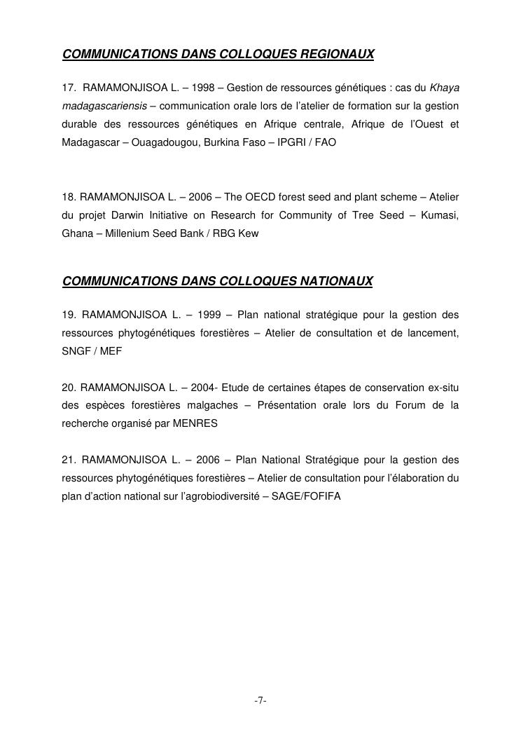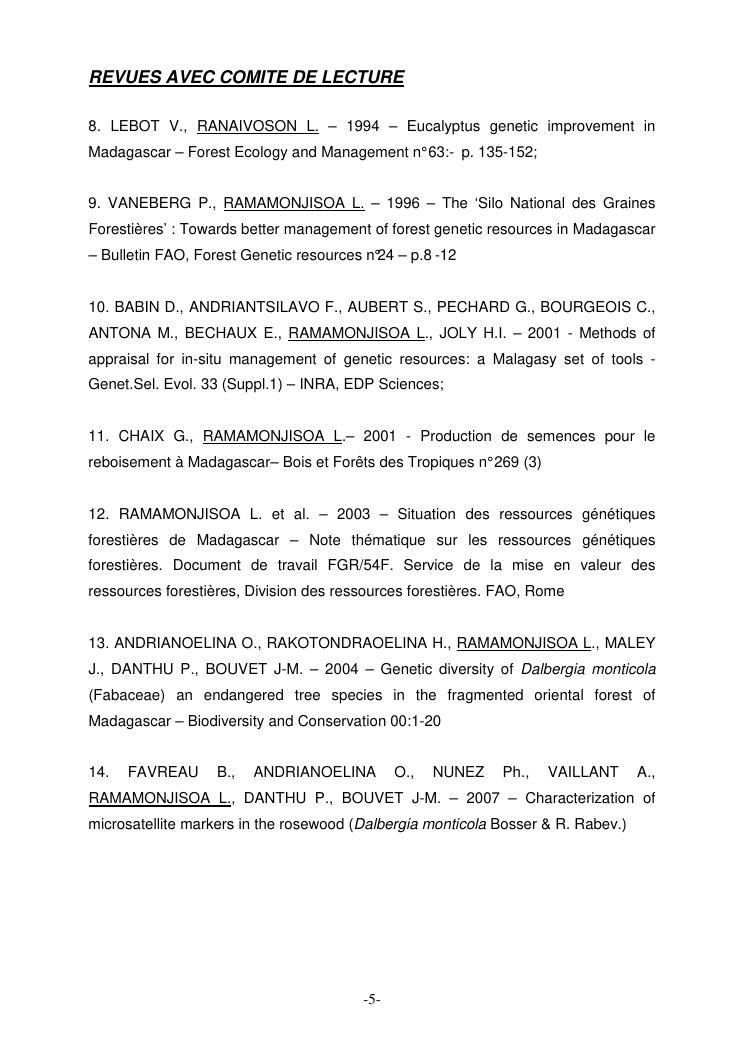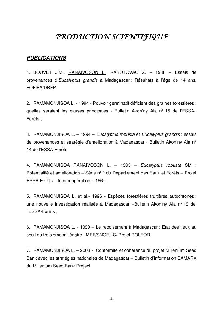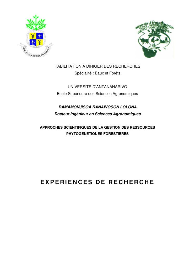 approches scientifiques de la gestion des ressources phytogenetiques forestieres. experiences de recherche