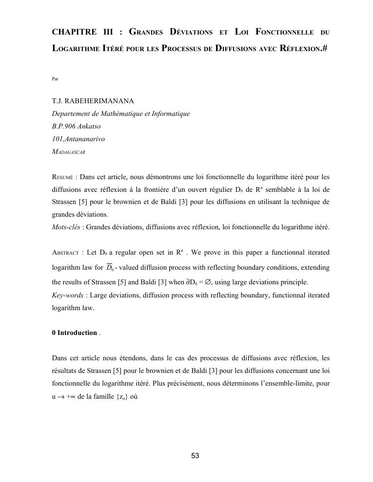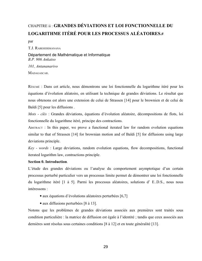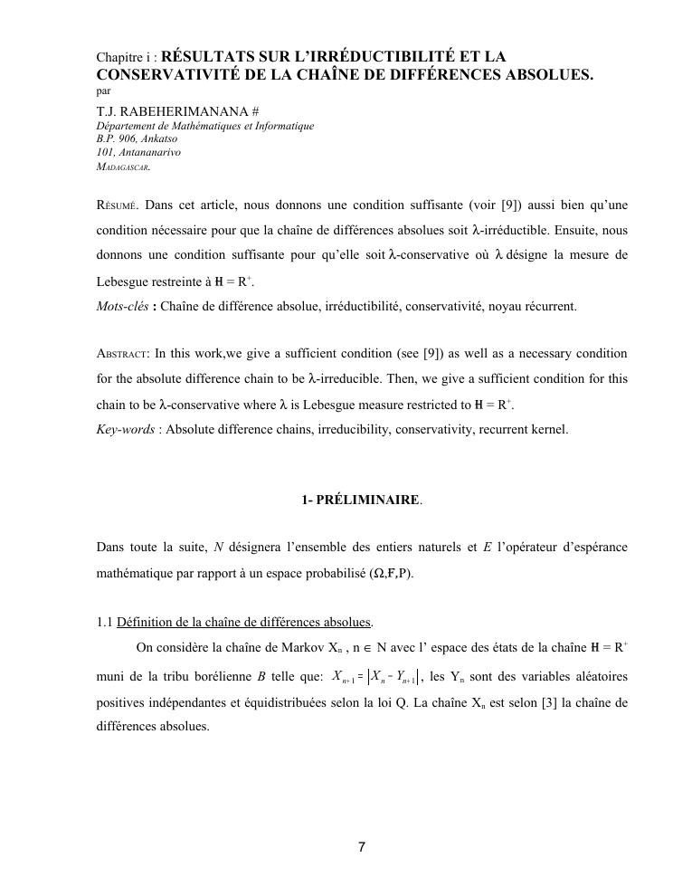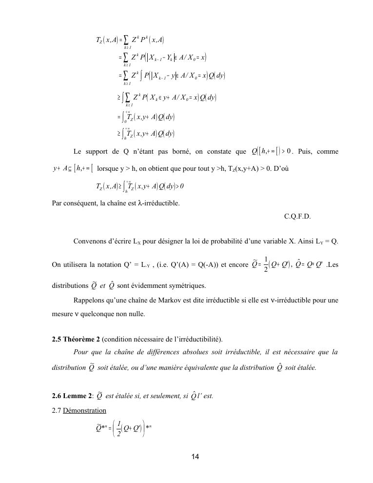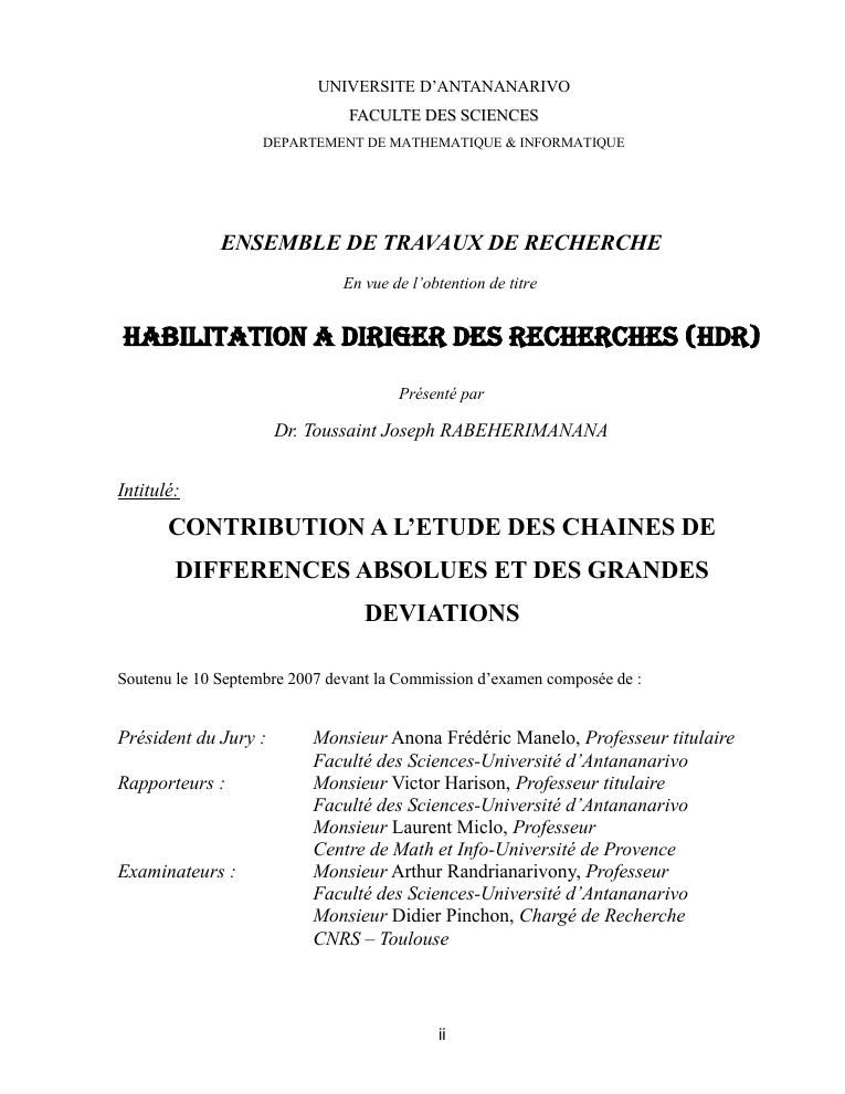 contribution a l'etude des chaines de differences absolues et des grandes deviations