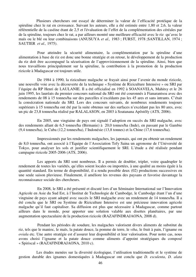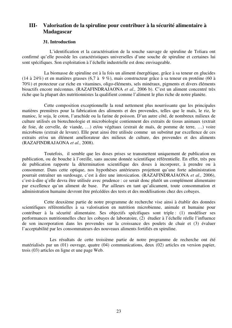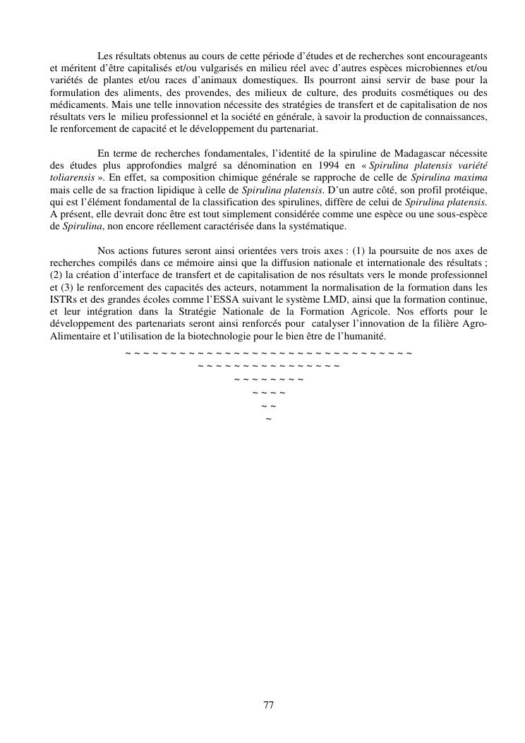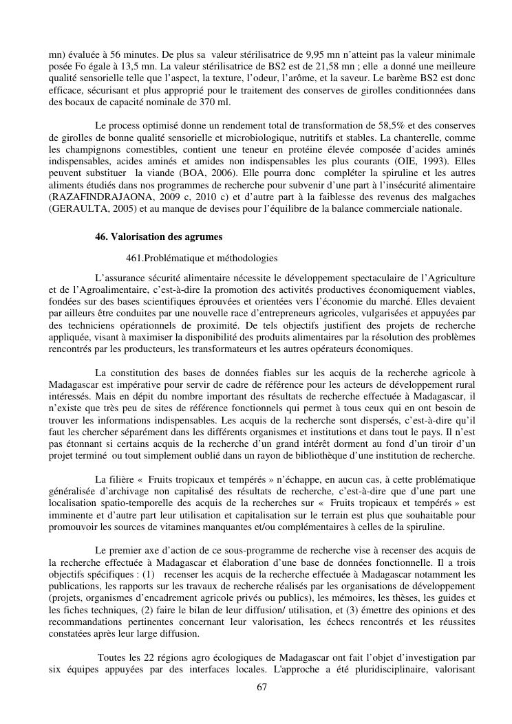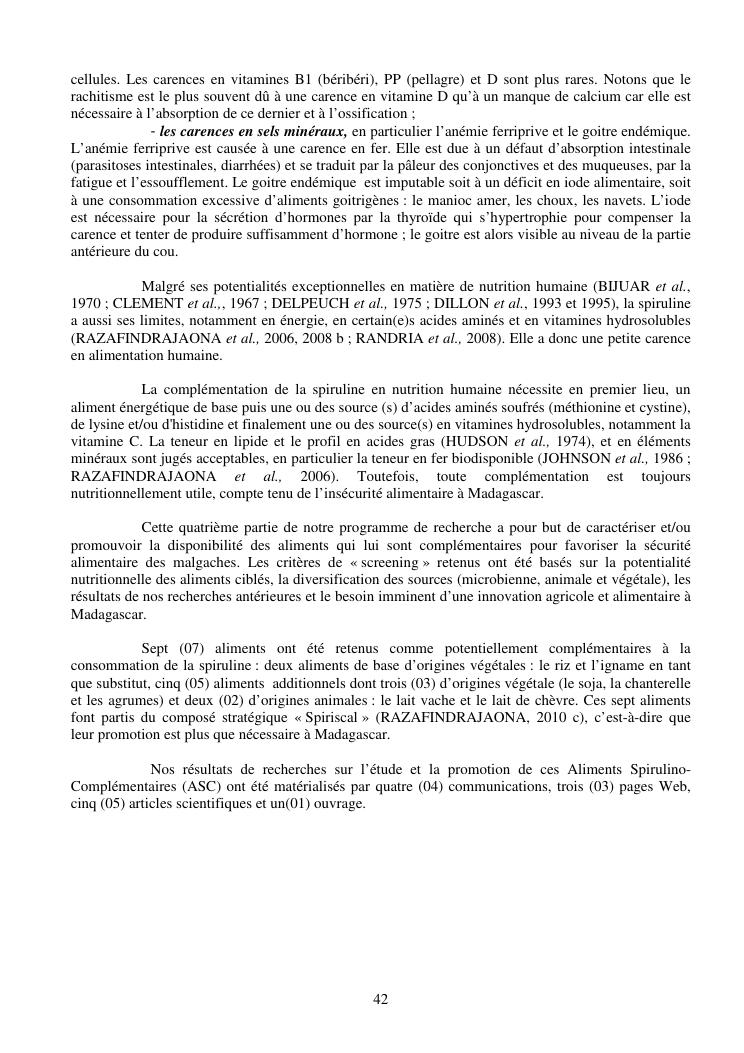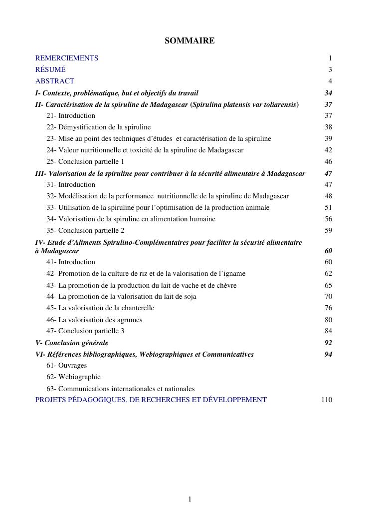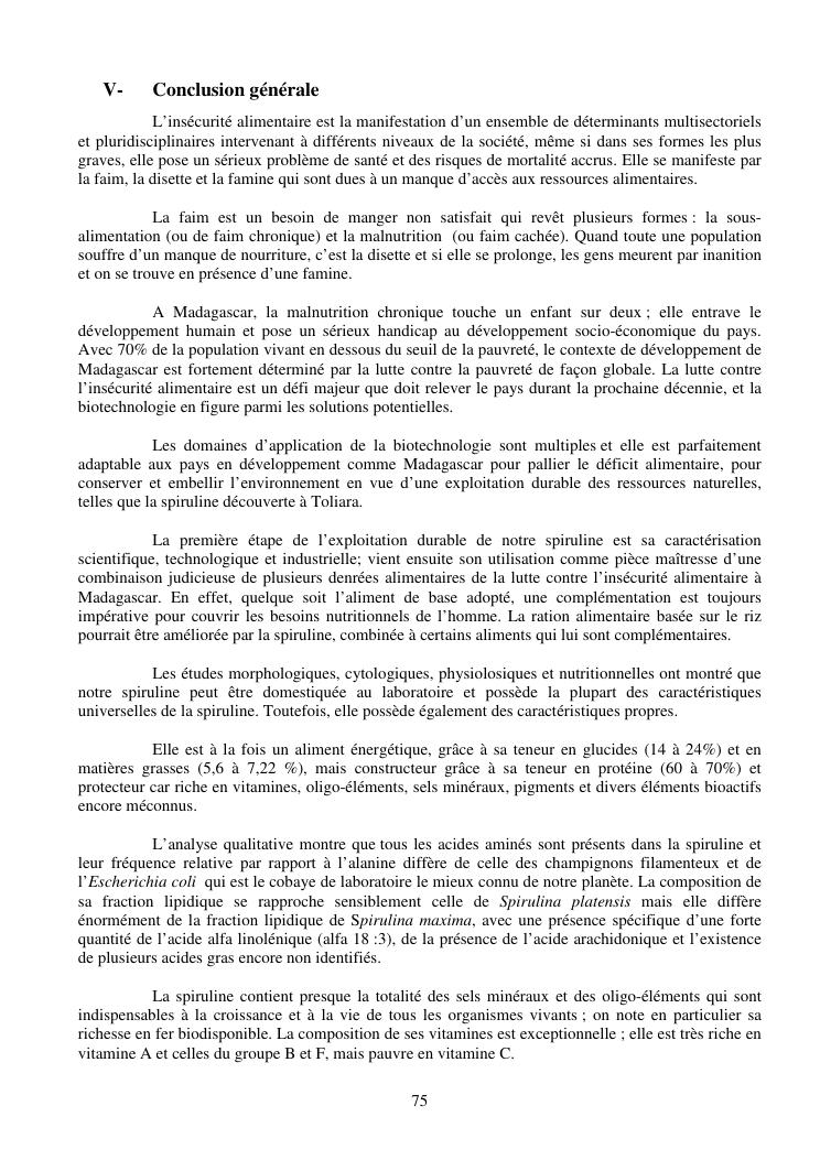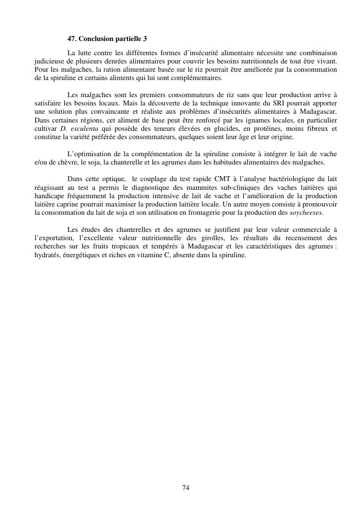 la biotechnologie au service de la sécurité alimentaire et de l'innovation agro-alimentaire à madagascar. valorisation intégrée des aliments d'origines microbiennes, animales et végétales : spiruline, lait de vache et de chèvre, soja, chanterelle, igname et agrumes. synthèse des travaux de recherche