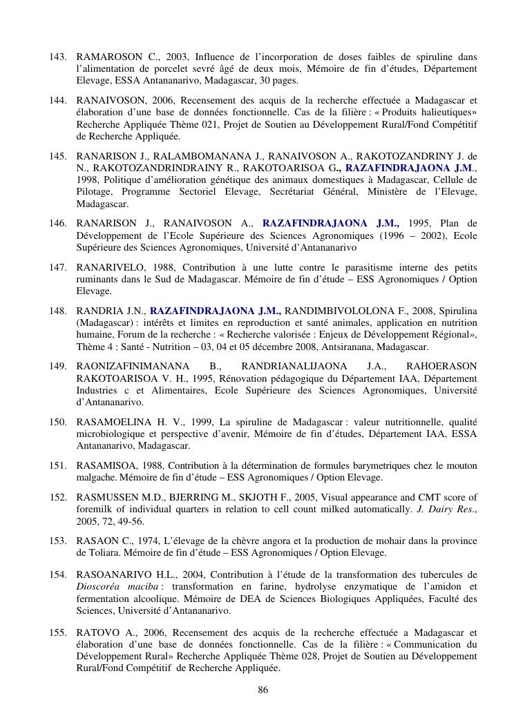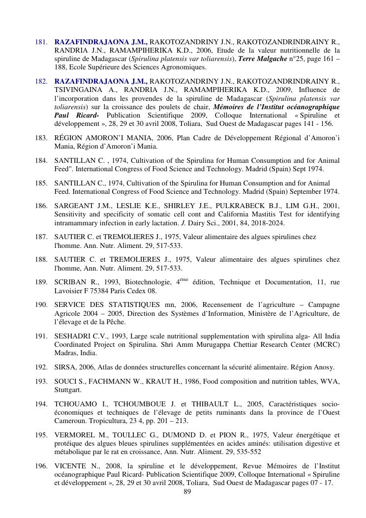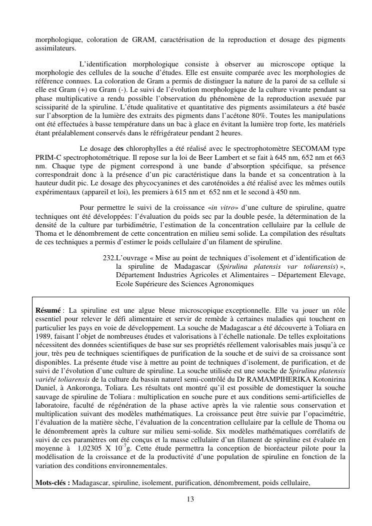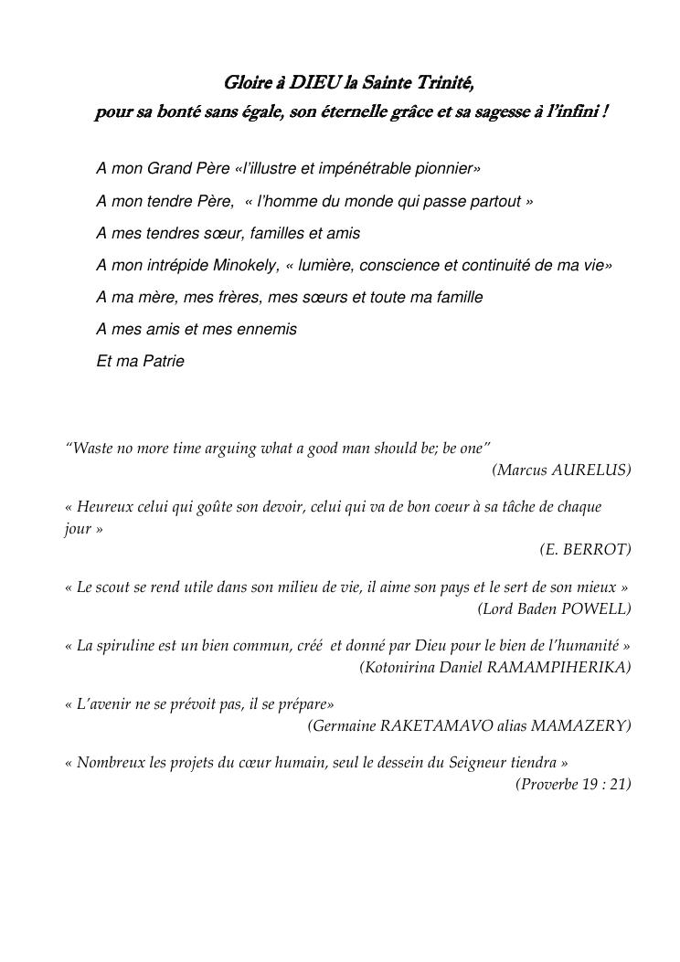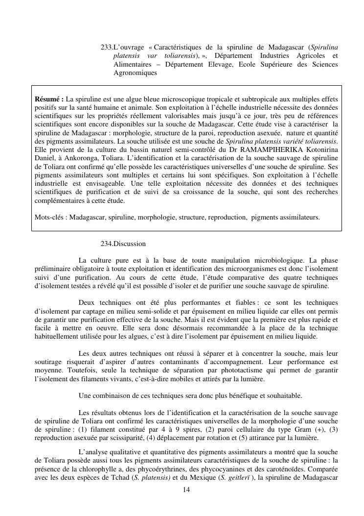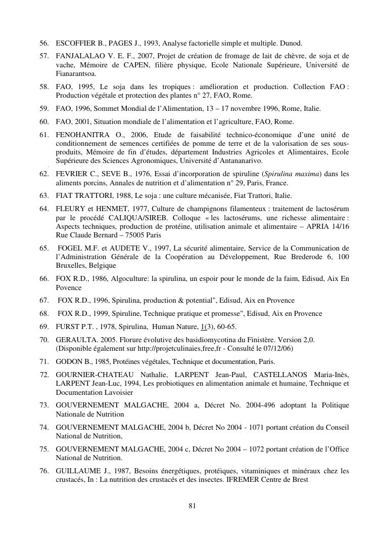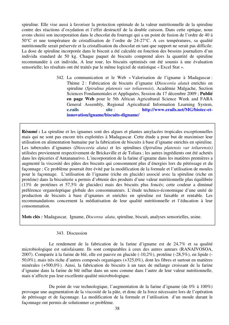 la biotechnologie au service de la sécurité alimentaire et de l'innovation agro-alimentaire à madagascar. valorisation intégrée des aliments d'origines microbiennes, animales et végétales : spiruline, lait de vache et de chèvre, soja, chanterelle, igname et agrumes. synthèse des travaux de recherche