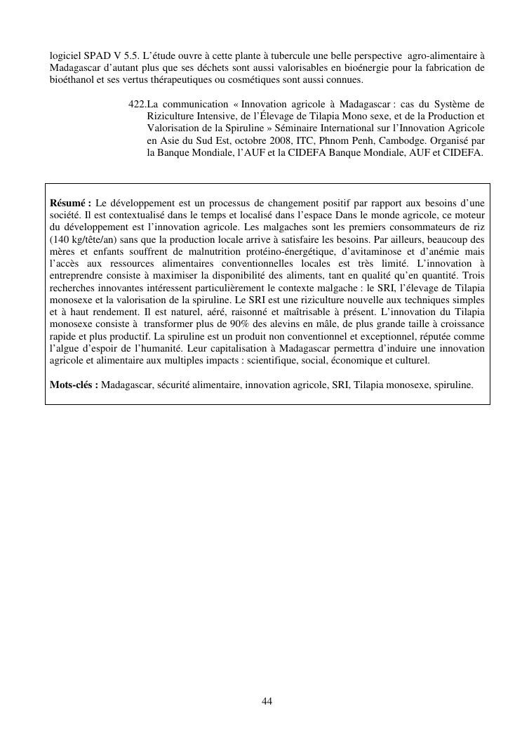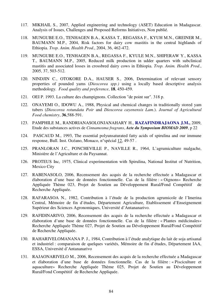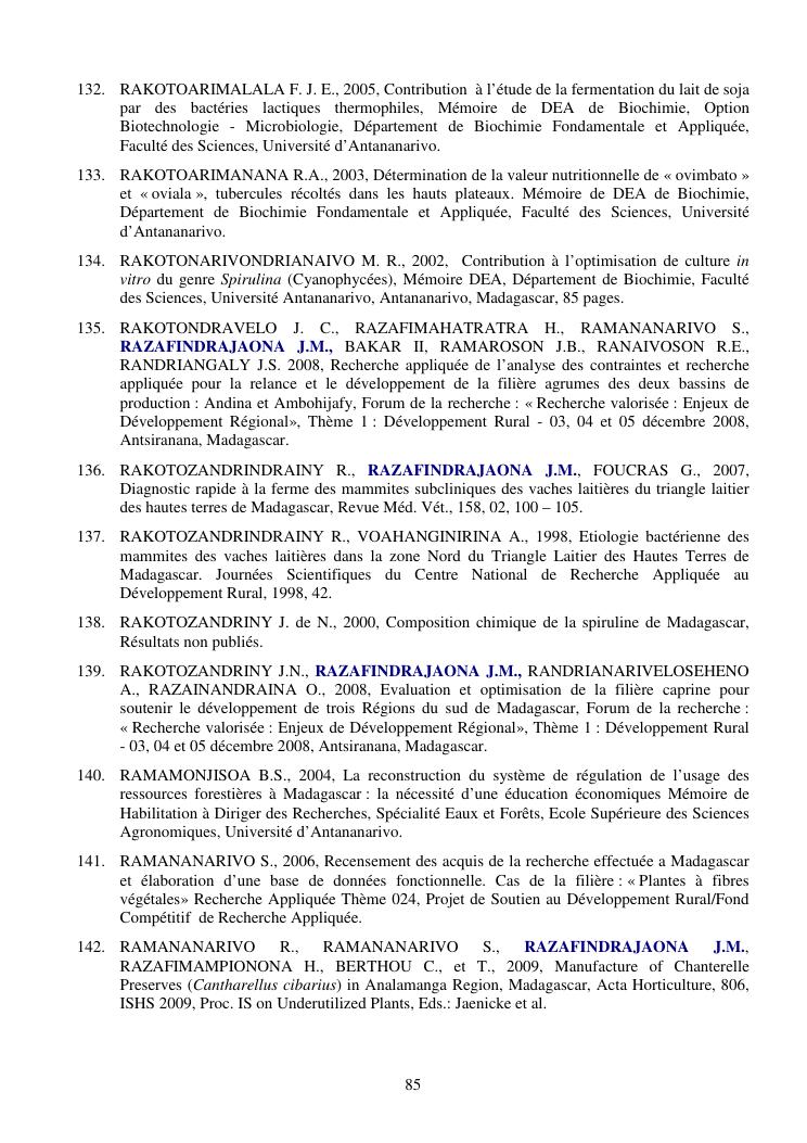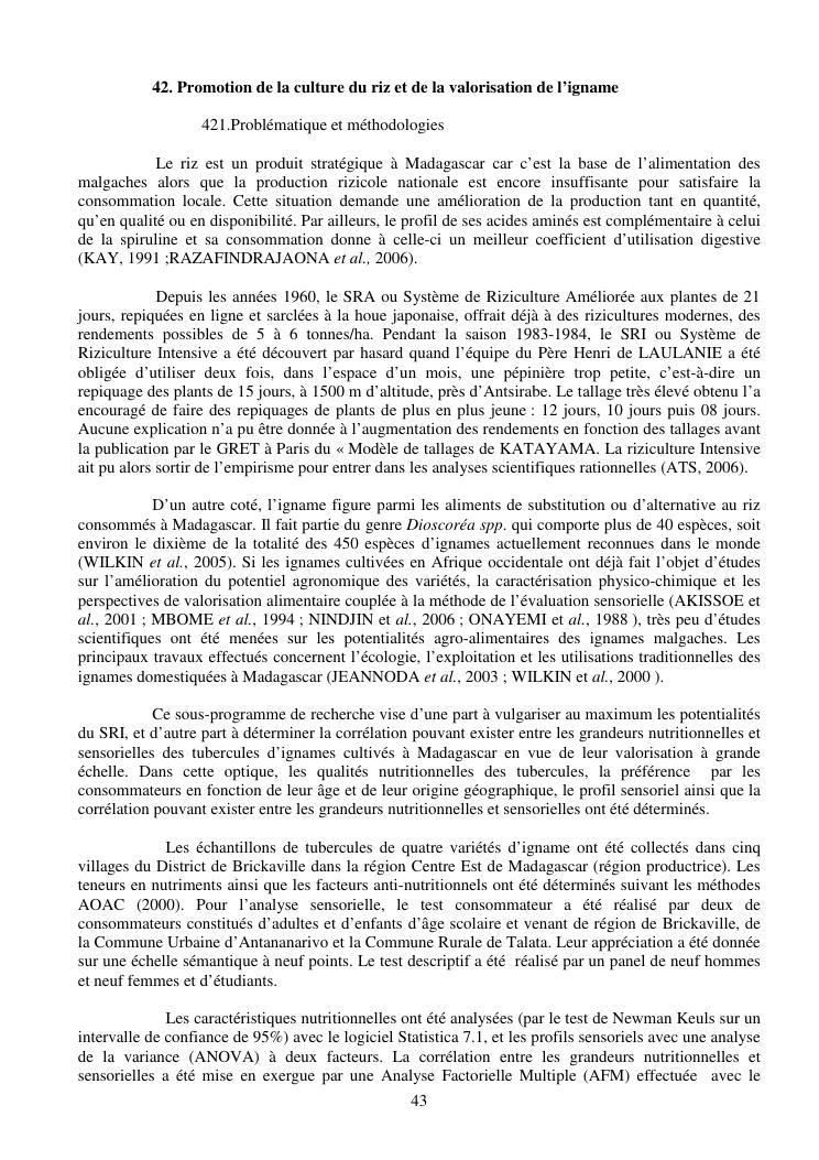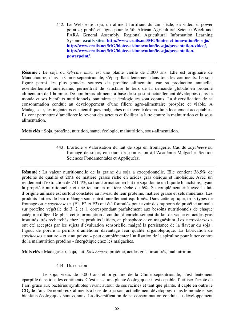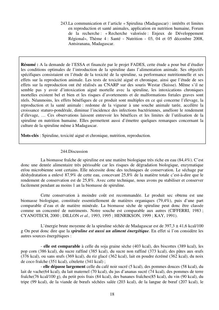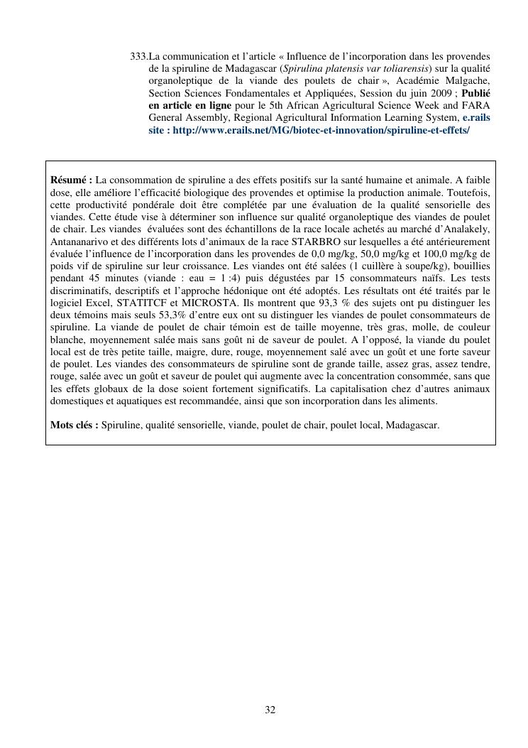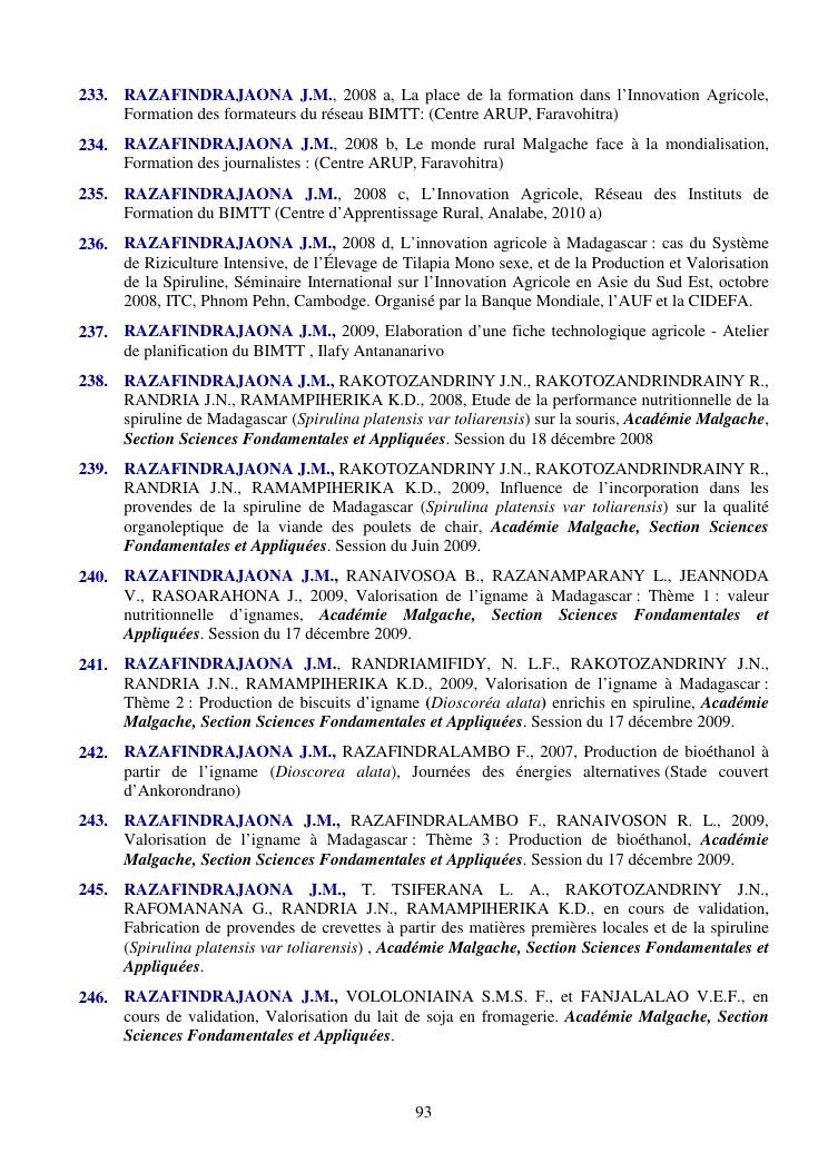 la biotechnologie au service de la sécurité alimentaire et de l'innovation agro-alimentaire à madagascar. valorisation intégrée des aliments d'origines microbiennes, animales et végétales : spiruline, lait de vache et de chèvre, soja, chanterelle, igname et agrumes. synthèse des travaux de recherche