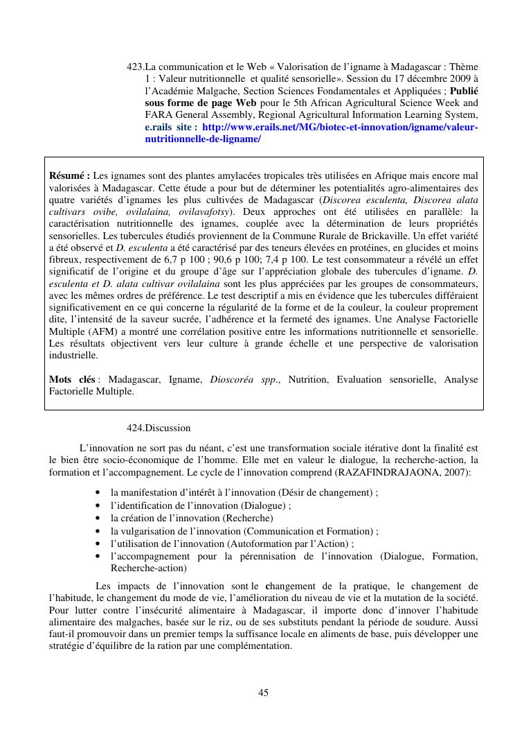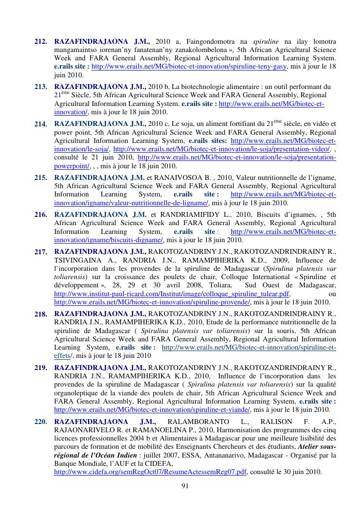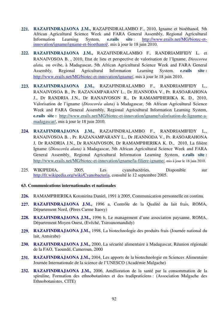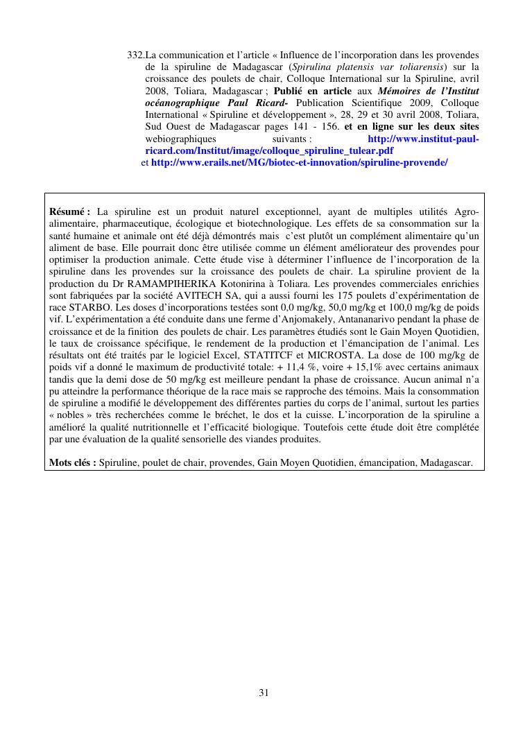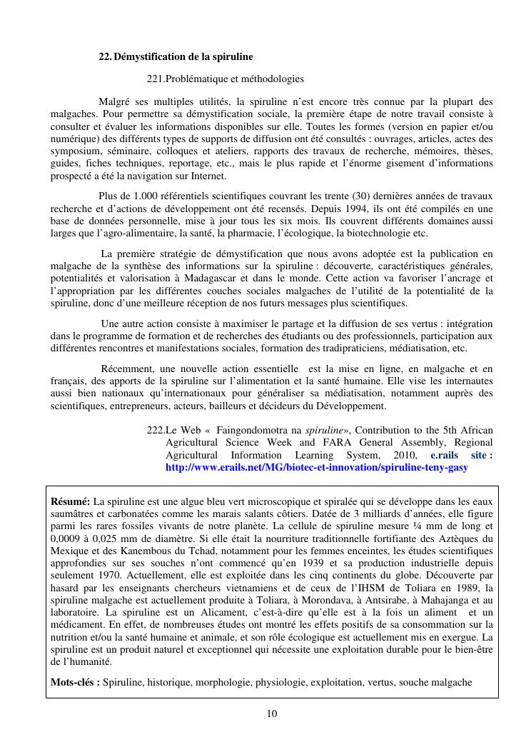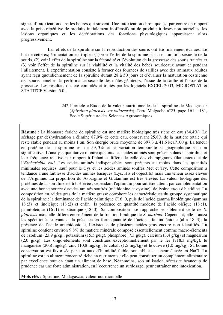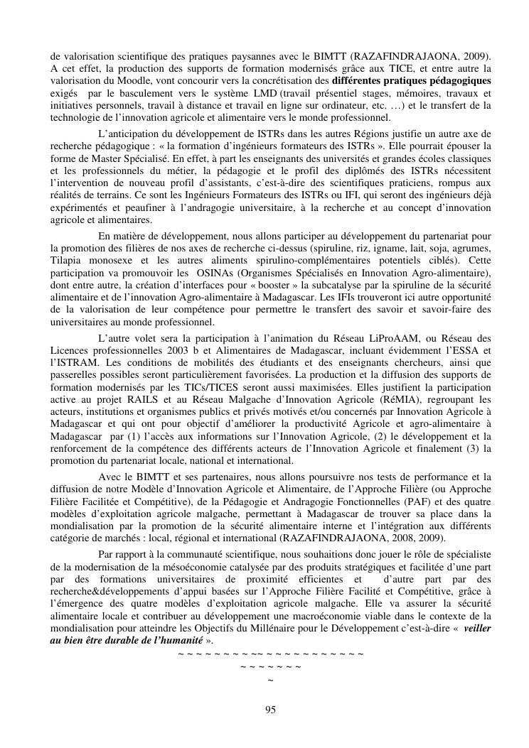 la biotechnologie au service de la sécurité alimentaire et de l'innovation agro-alimentaire à madagascar. valorisation intégrée des aliments d'origines microbiennes, animales et végétales : spiruline, lait de vache et de chèvre, soja, chanterelle, igname et agrumes. synthèse des travaux de recherche