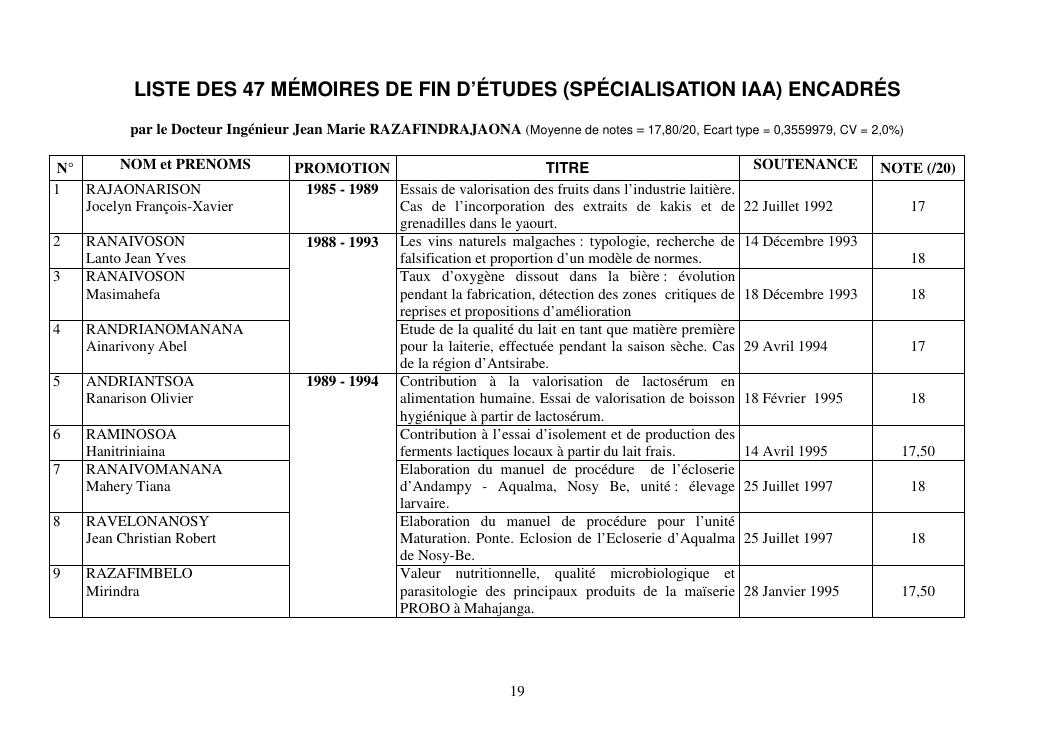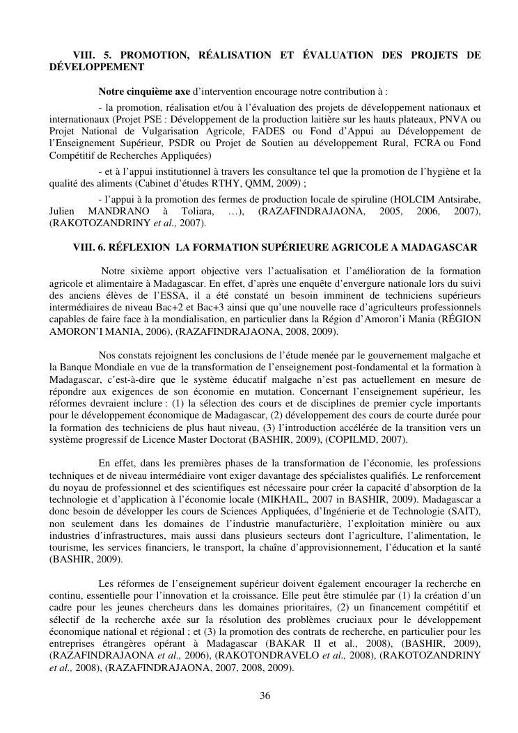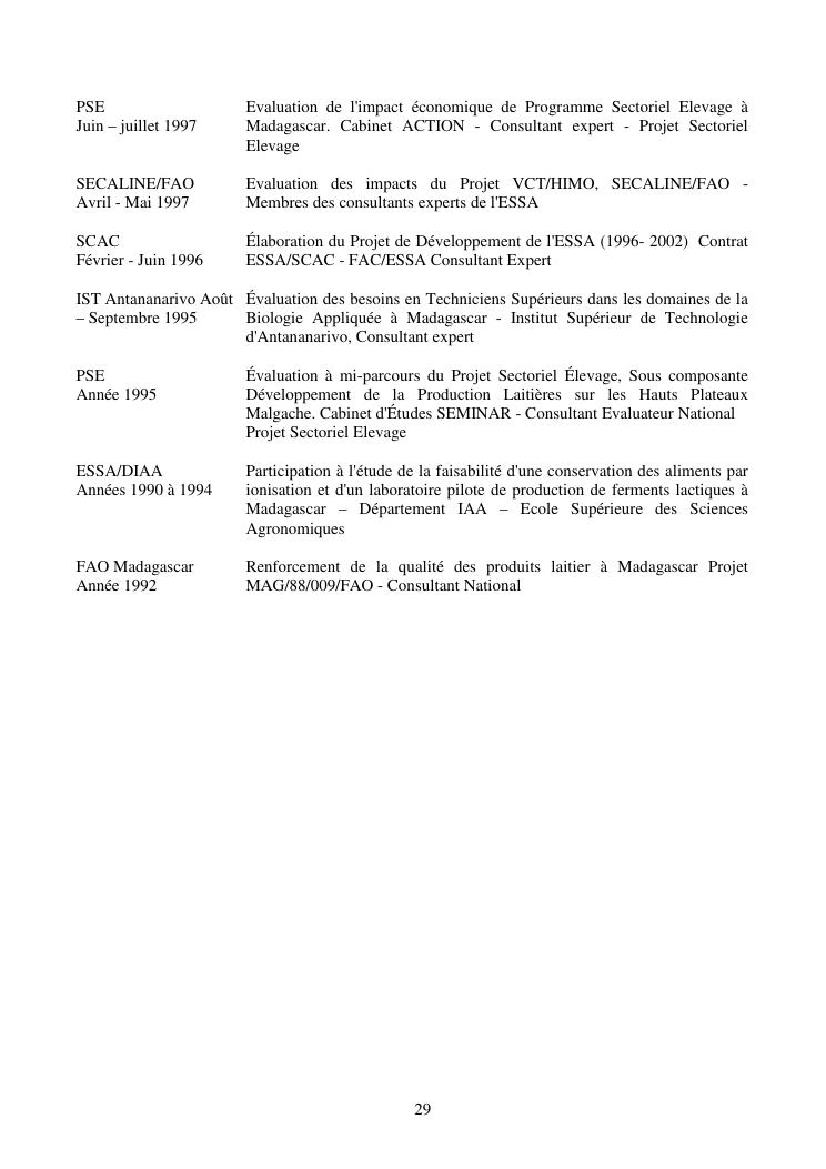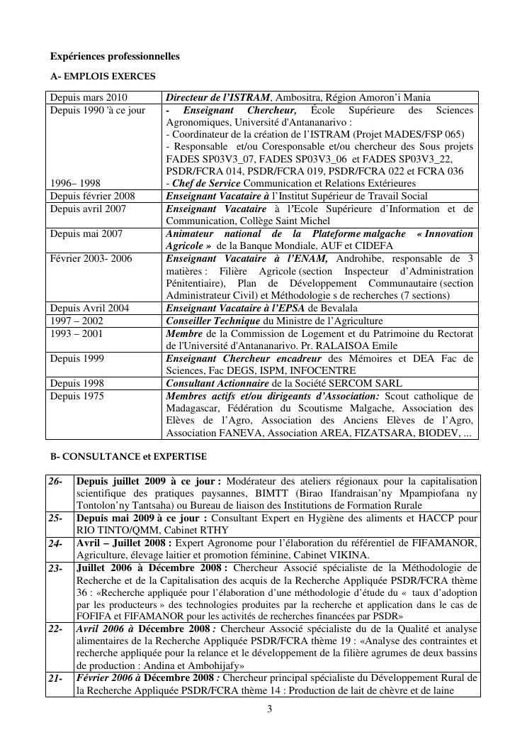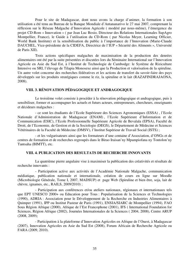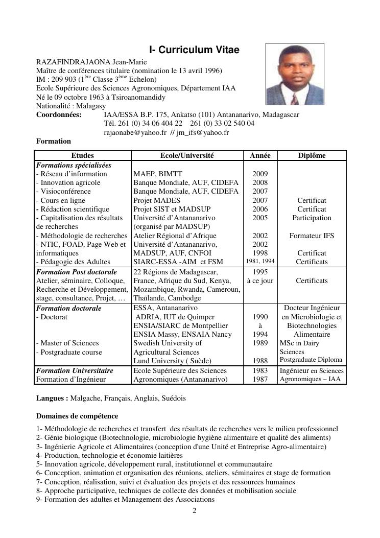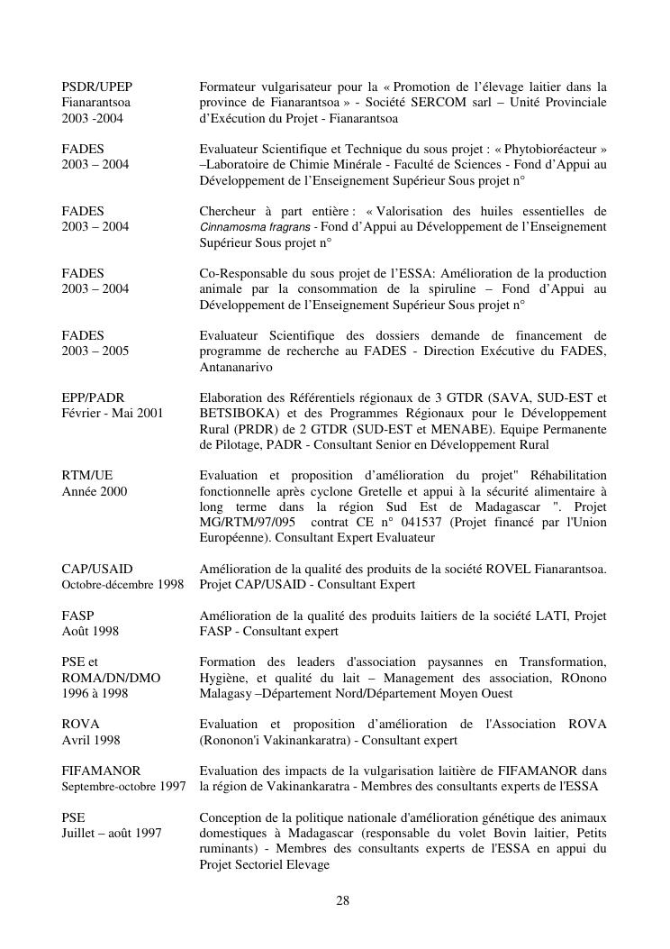 la biotechnologie au service de la sécurité alimentaire et de l'innovation agro-alimentaire à madagascar. valorisation intégrée des aliments d'origines microbiennes, animales et végétales : spiruline, lait de vache et de chèvre, soja, chanterelle, igname et agrumes. document annexe n°1 : présentation du candidat - curriculum vitae - production scientifique et publications - encadrement de recherches et des projets estudiantins - valorisation scientifique - transfert vers les institutions opérationnelles - enseignement - production de connaissance et renforcement de capacité - développement de partenariat